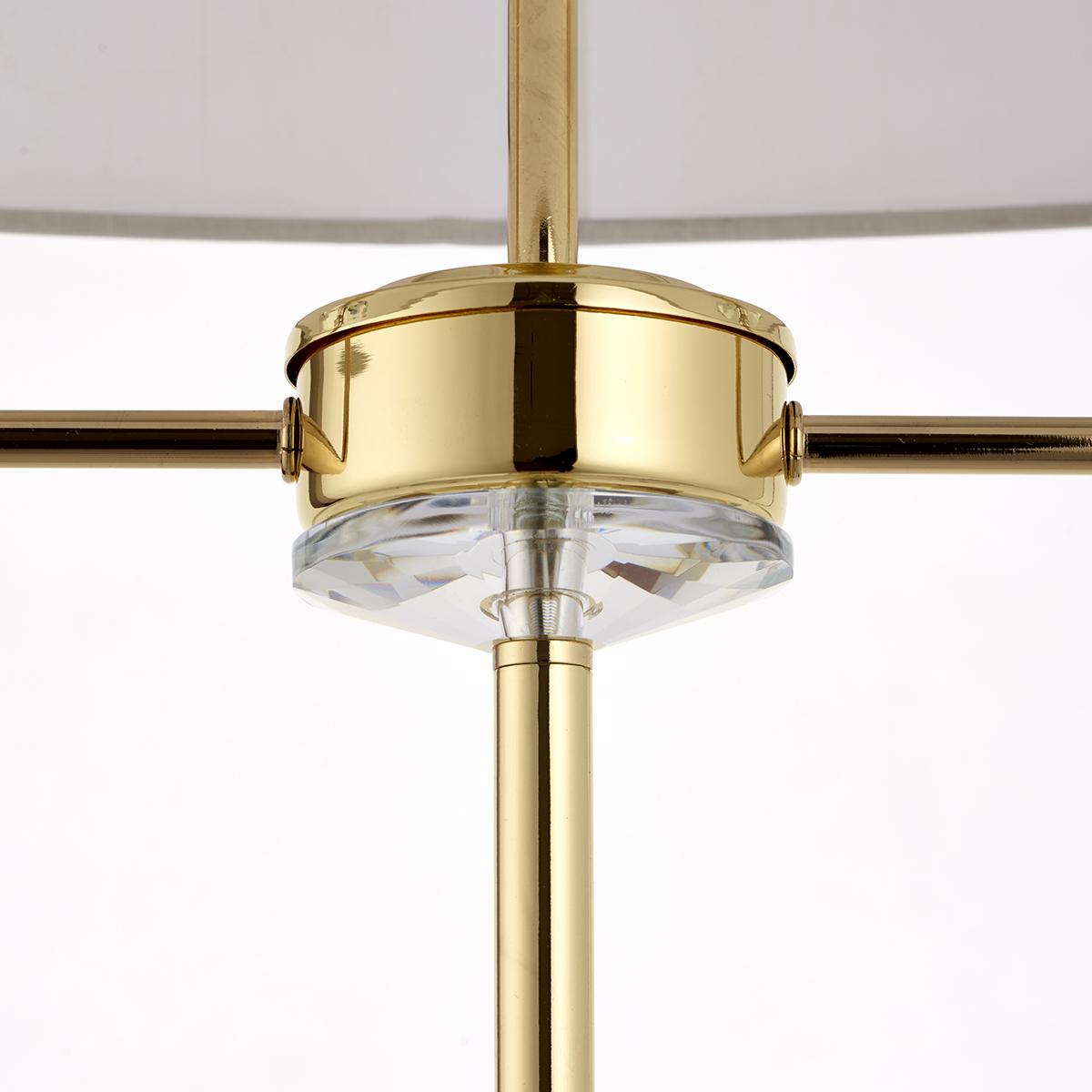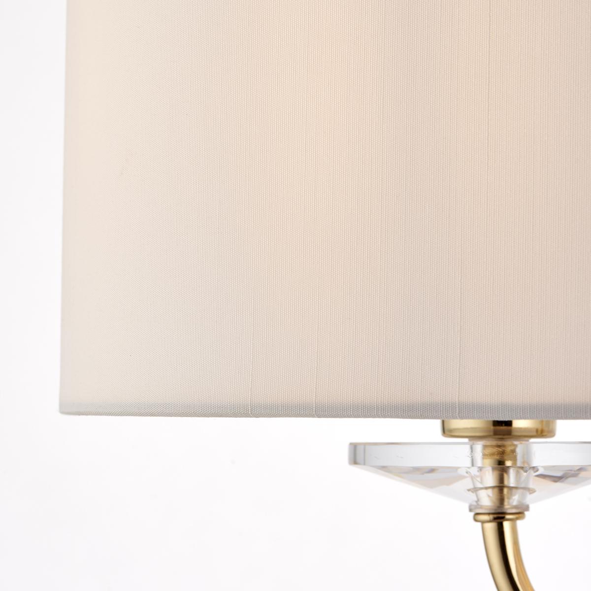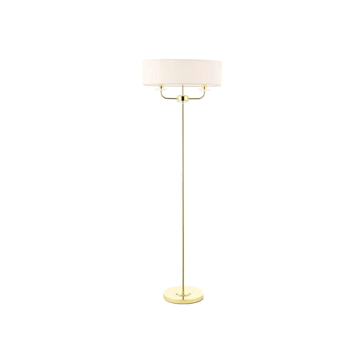 Nestor Two Light Floor Lamp in Brass with Vintage White Fabric Shade