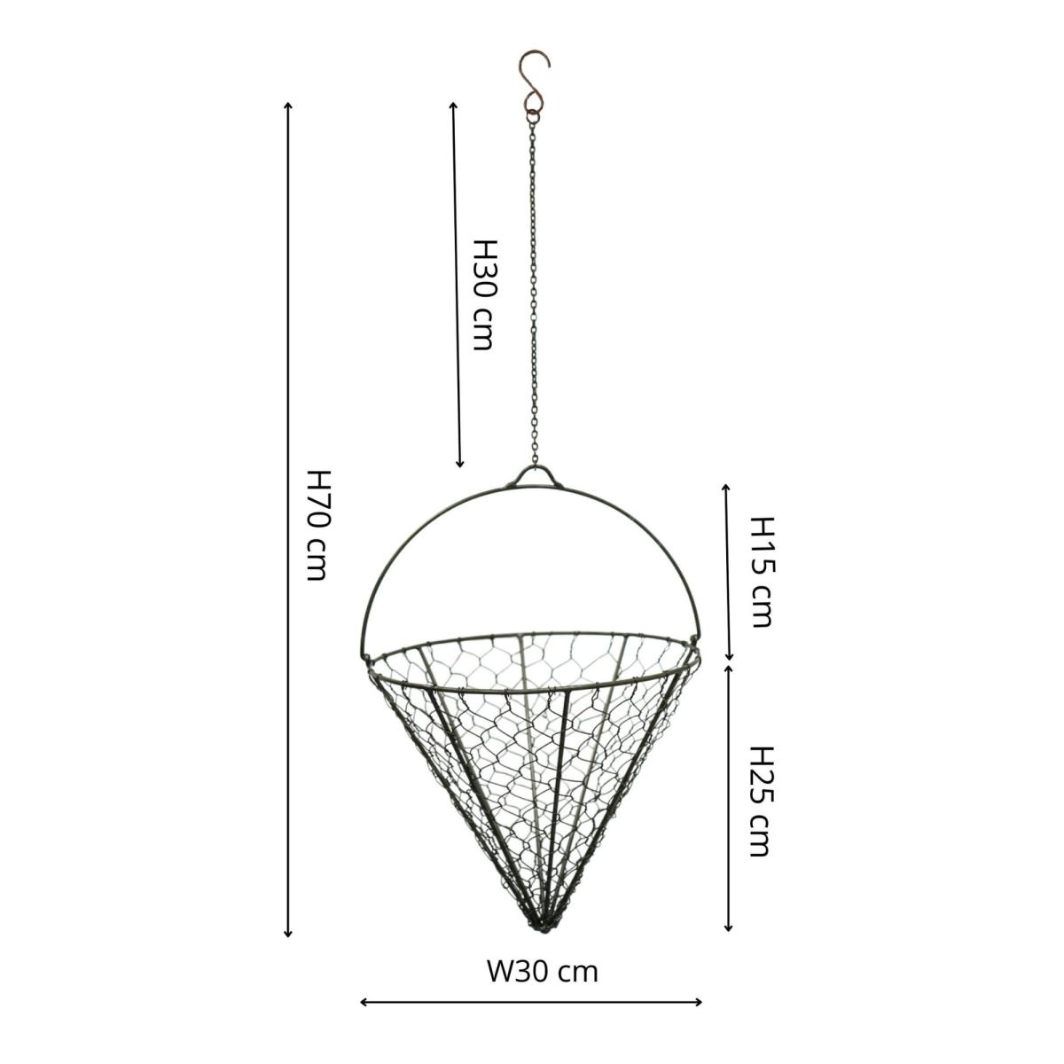 Put the spotlight on your favourite flowering blooms for a decorative and welcoming touch along a blank wall or beside your doorway. Perfect for elevating your plants to a visible height, this cone shaped hanging basket will offer a delightful display while being suspended from a hanging chain and hook. Frost resistant, rust resistant and UV stable qualities makes it perfect for outdoor use and the option of a zinc or bronze finish is perfect for matching to your current décor style.