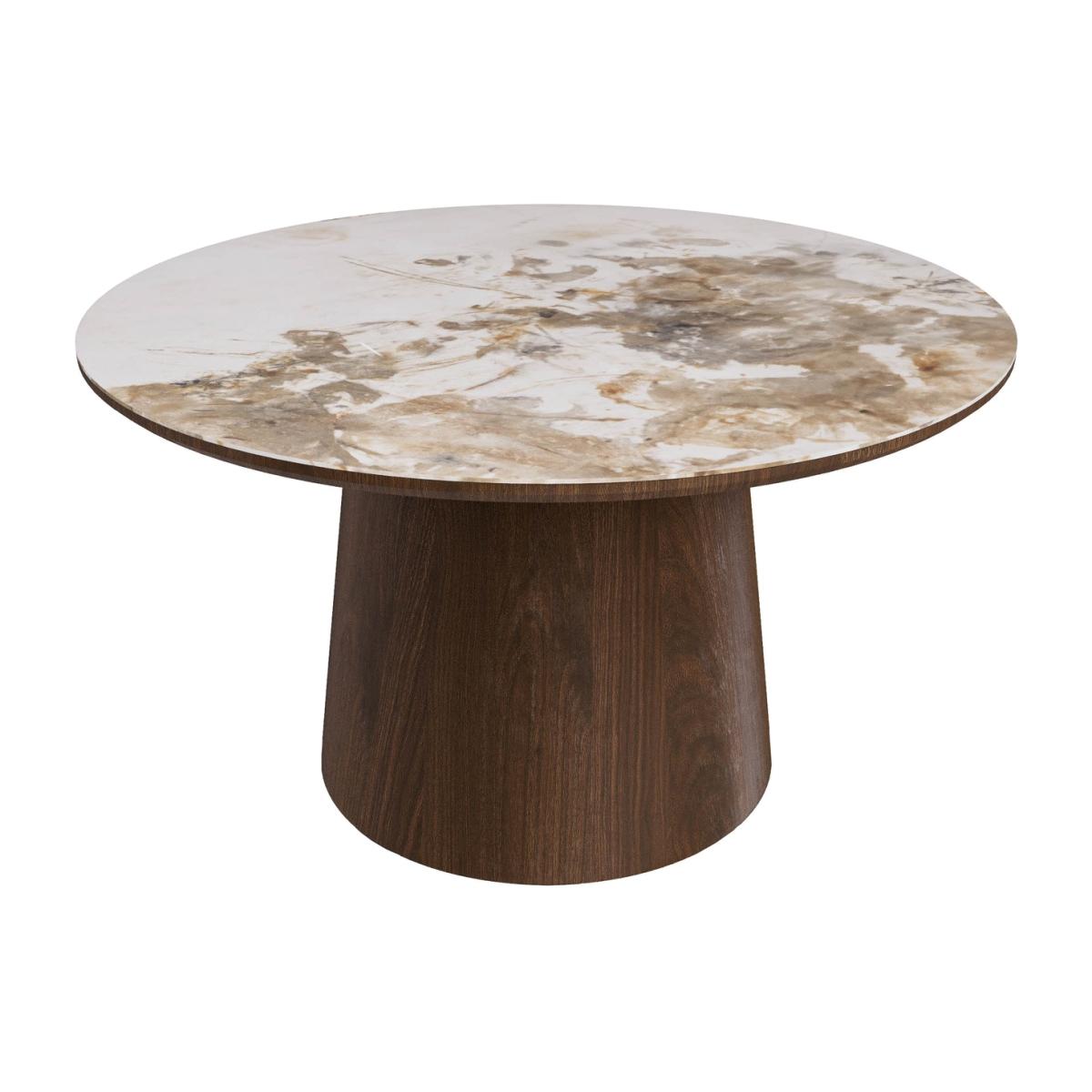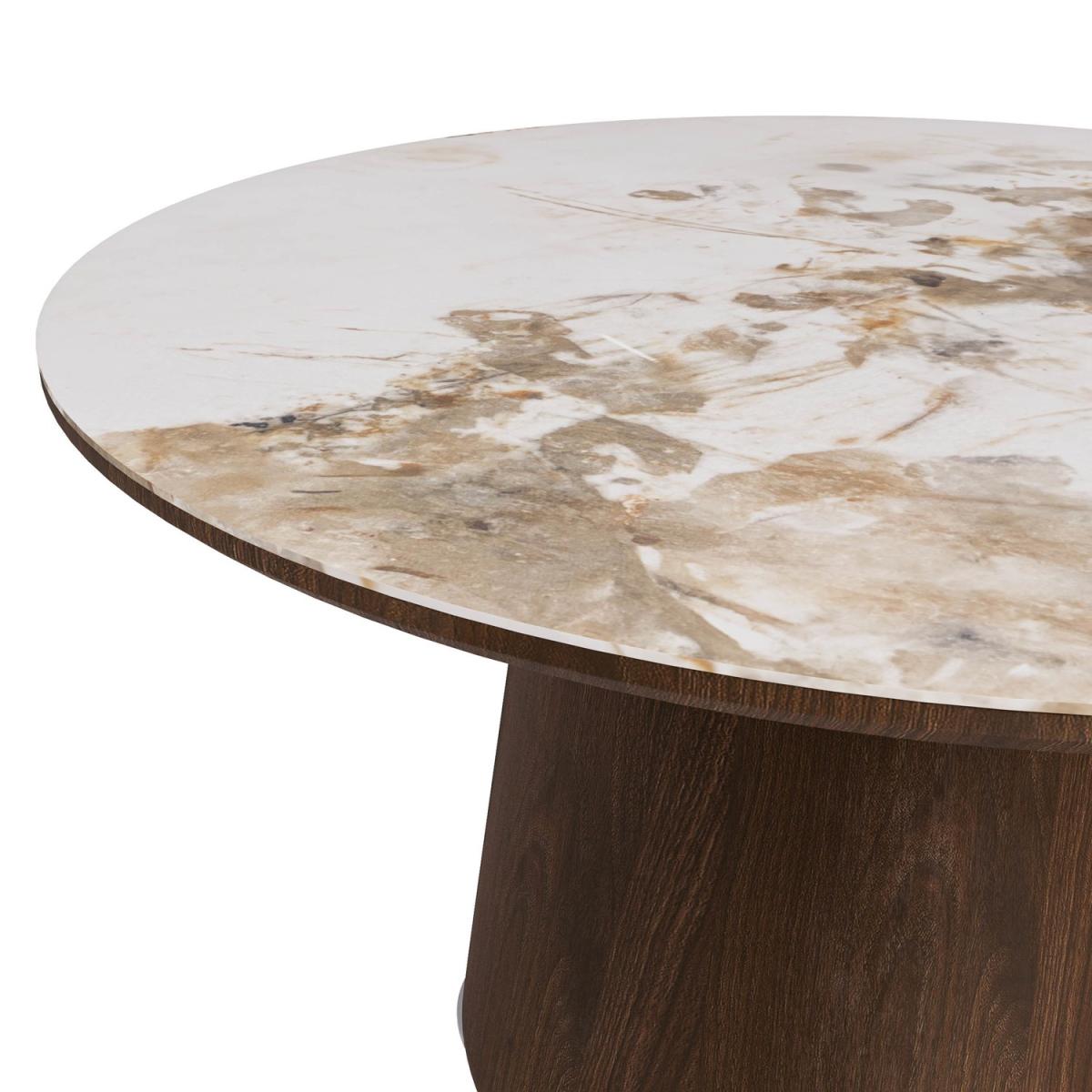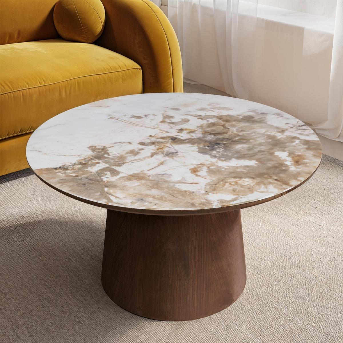 Neutral Ceramic Round Walnut Coffee Table and Sofa Table - Malia