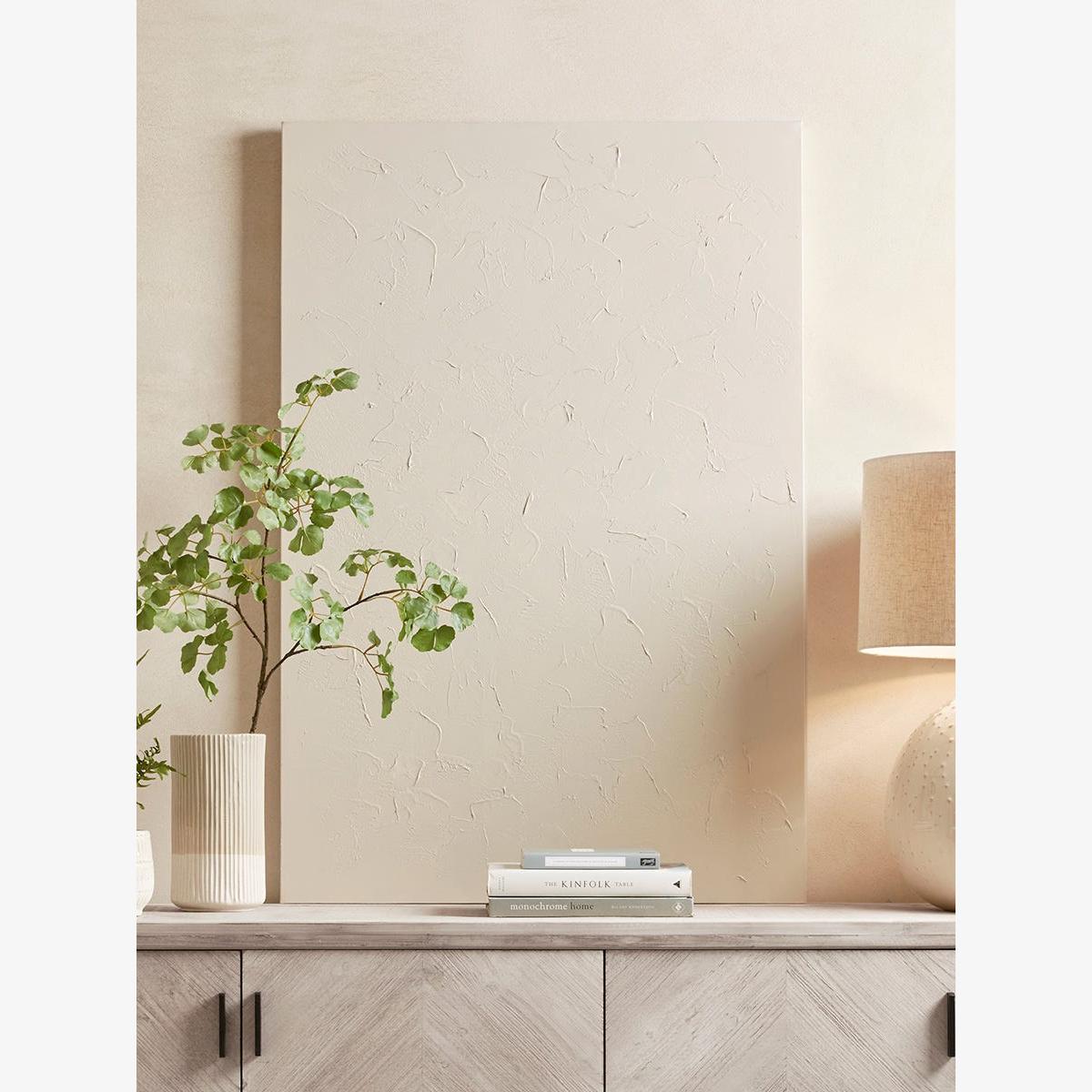 I love this textured abstract canvas for its subtle sophistication and versatile colour palette. It works particularly well in contemporary and minimalist interiors, adding depth without overpowering the space. Practical styling tips include pairing it with neutral-toned furnishings to create a calming atmosphere or layering it with other artworks for a curated look. It’s perfect above a sofa, fireplace, or sideboard, and its understated design means it can adapt seamlessly to both residential and commercial interiors. Keep accessories simple to let the artwork stand out, and consider framing it with sleek, modern surrounds to enhance its contemporary appeal.