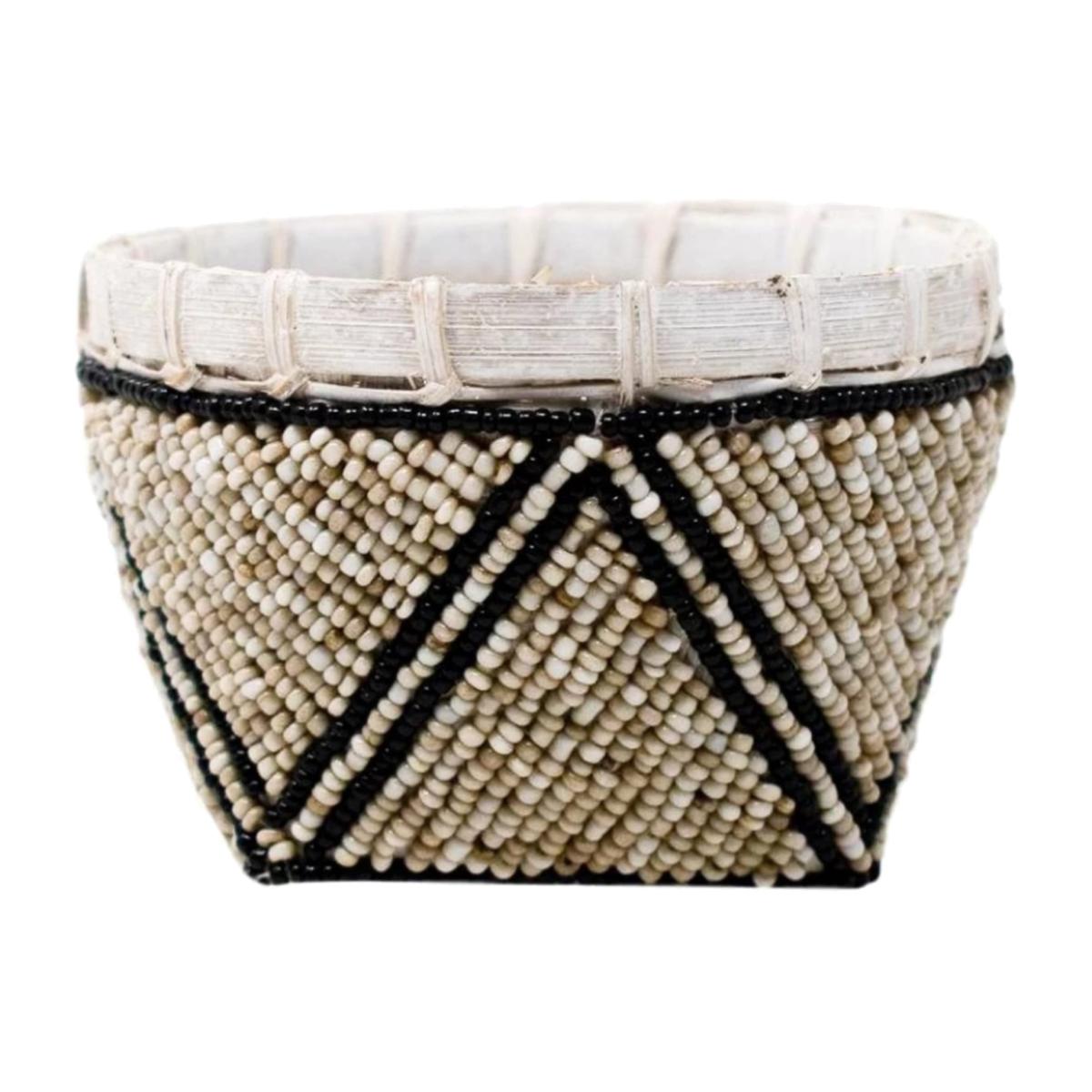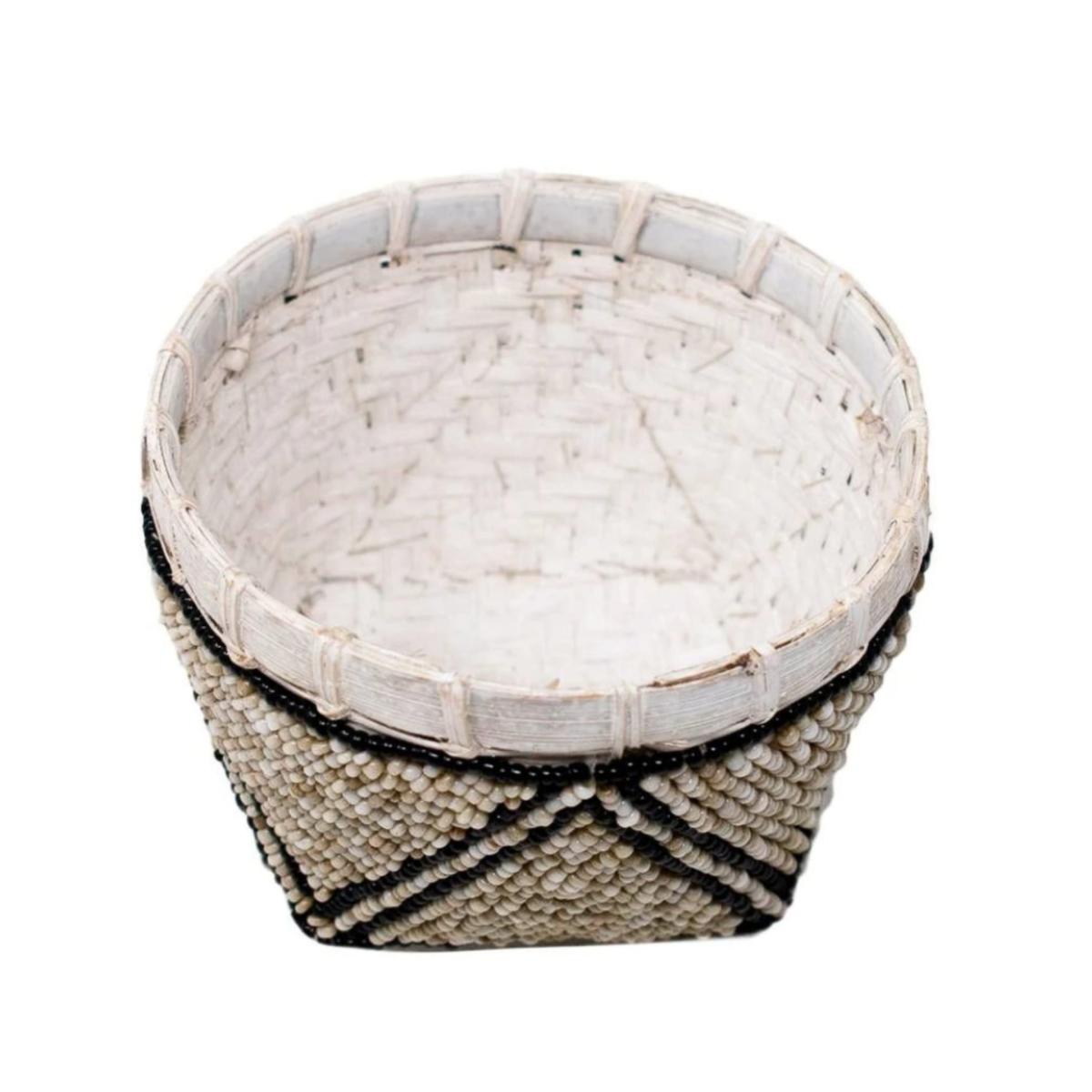 * A beautiful hand-beaded small bowl perfect for storing jewelry, keys, change, bathroom objects such as cotton balls, or simply adding a touch of texture to a counter top in your home. * Structure of the Trinket Basket Made from Handwoven Balinese Bamboo * 100% Handwoven and Hand-beaded * Handmade by talented women artisans in Bali, and sustainably sourced with care. * All POPPY + SAGE Trinket Baskets come with our signature linen dust bag, a premium added touch to protect your basket.