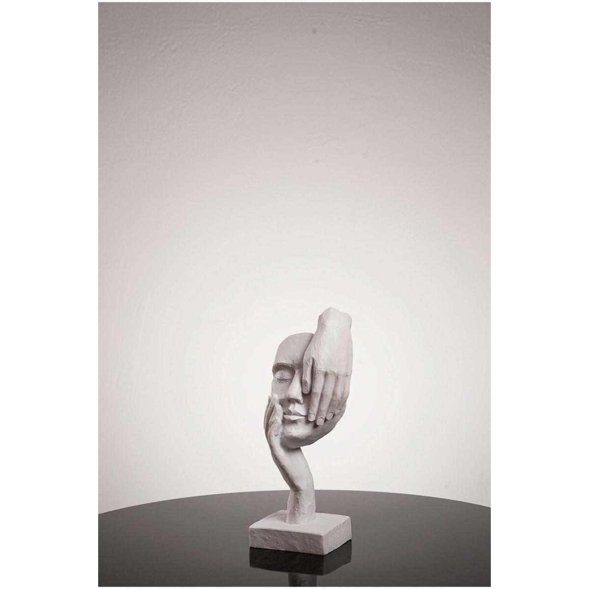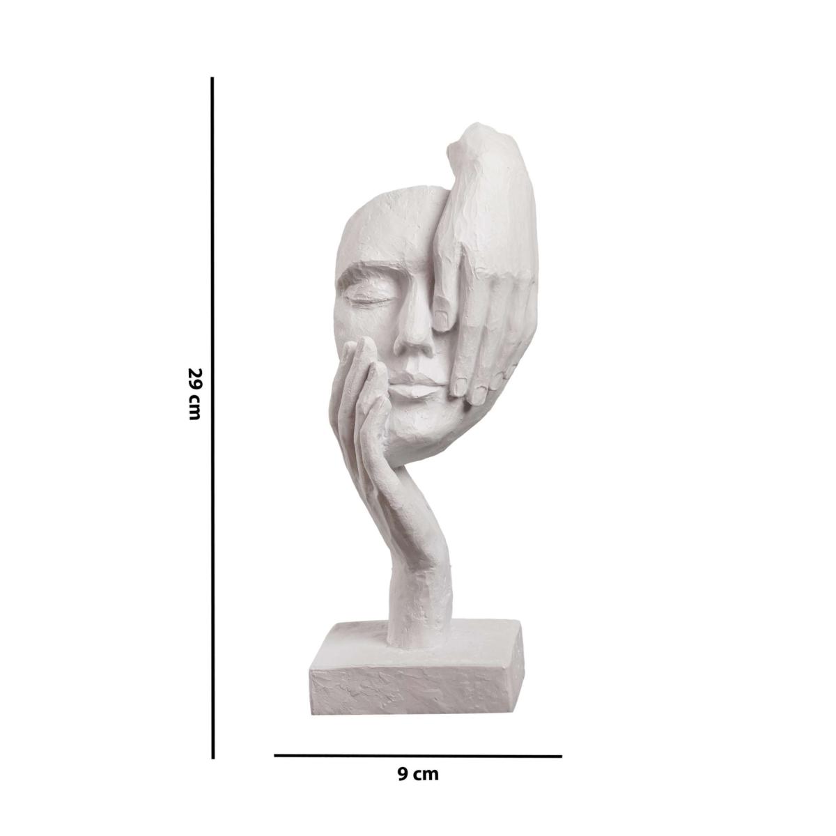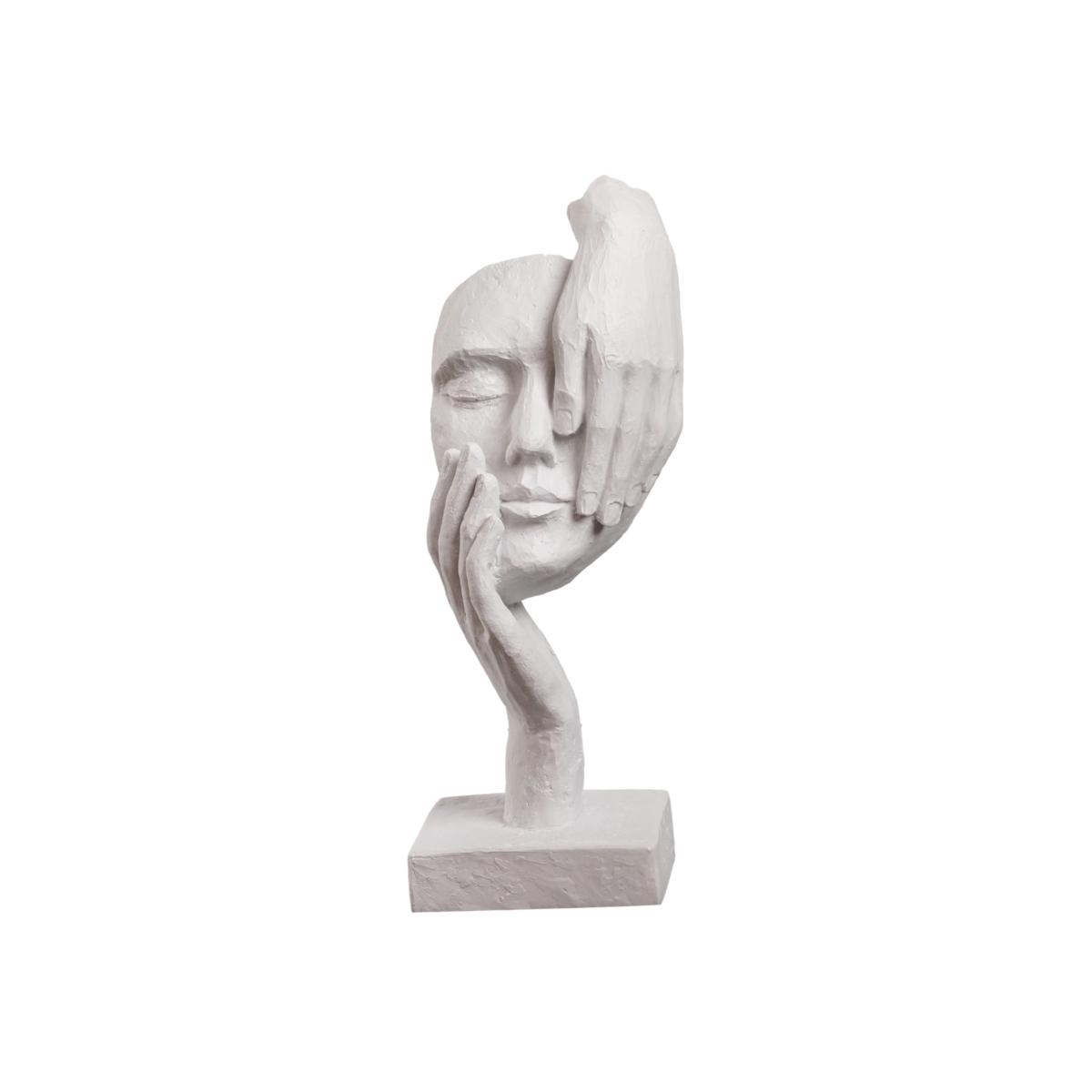 "Do you keep any secrets hidden behind your mask? This design encapsulates strong emotions through a simple yet bold design. With a solemn face and two cradling hands, this contemporary sculpture is minimal and powerful at the same time. Add some contemporary art to your home with this unique piece. This mask sculpture is created from high-quality materials to ensure a durable finish. With premium design and careful craft, this design is like no other. Perfect for both home decor and office desks."