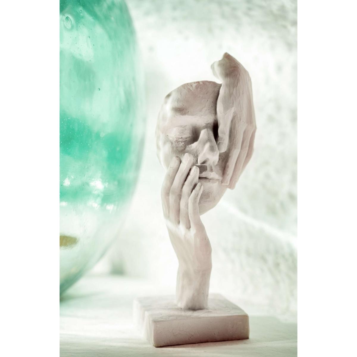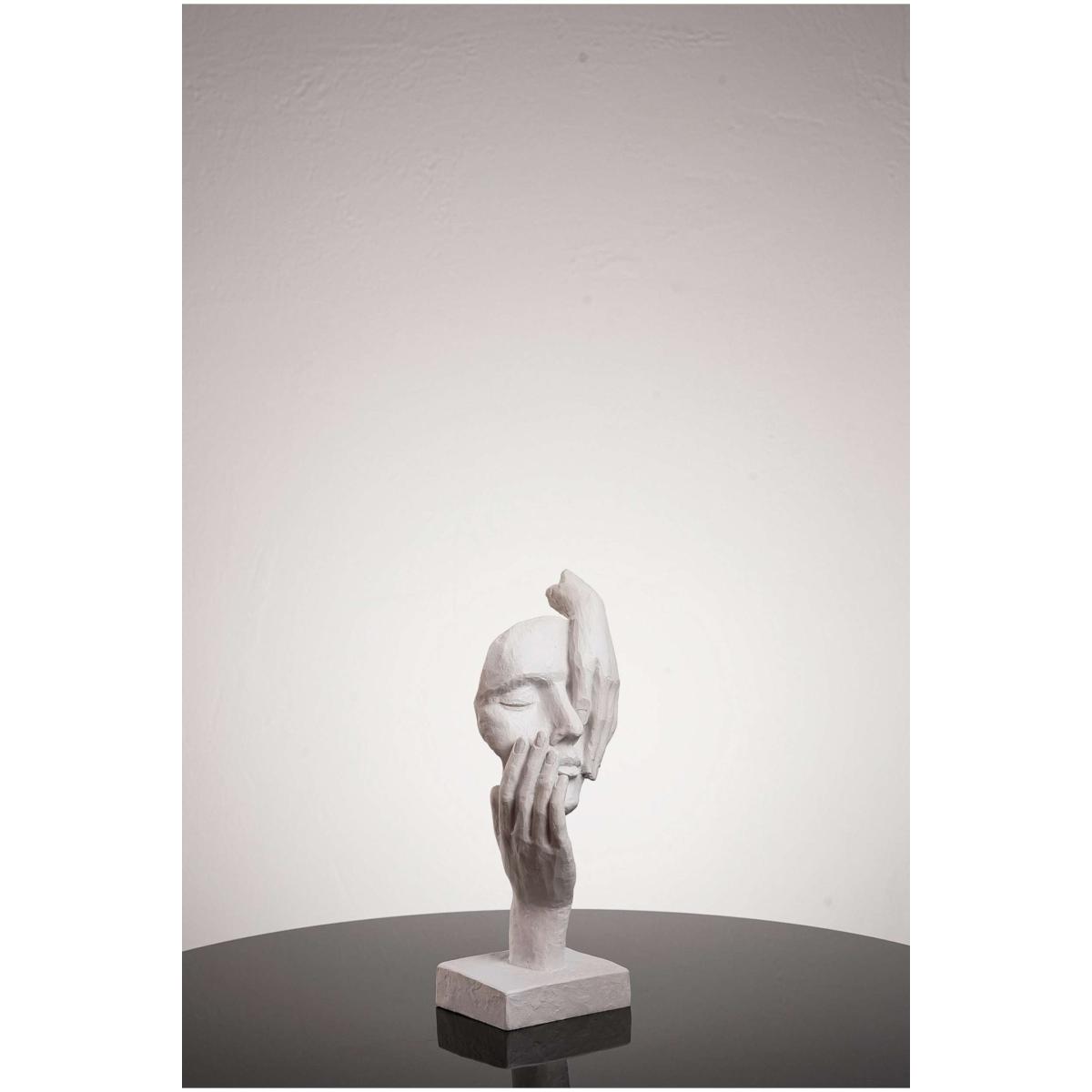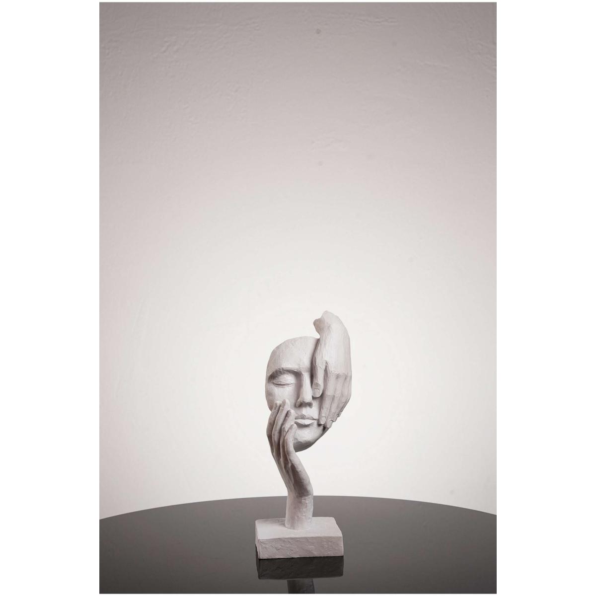 "Do you keep any secrets hidden behind your mask? This design encapsulates strong emotions through a simple yet bold design. With a solemn face and two cradling hands, this contemporary sculpture is minimal and powerful at the same time. Add some contemporary art to your home with this unique piece. This mask sculpture is created from high-quality materials to ensure a durable finish. With premium design and careful craft, this design is like no other. Perfect for both home decor and office desks."