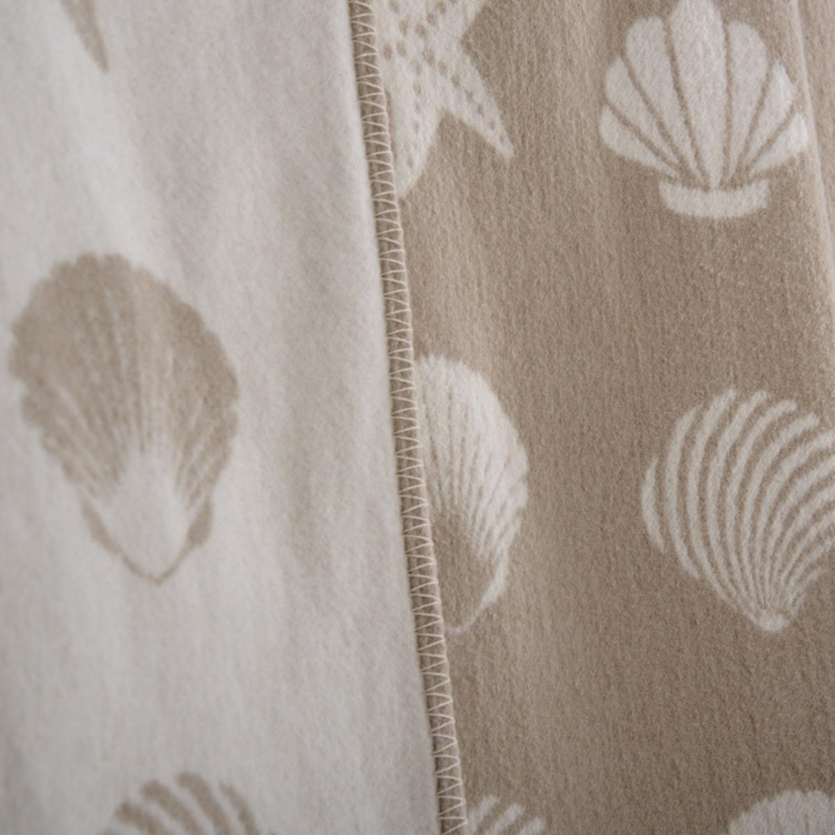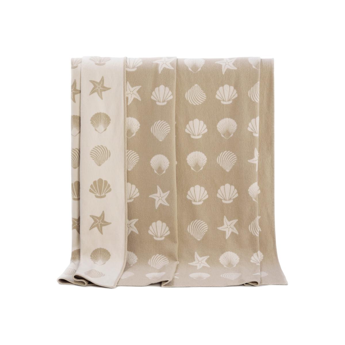 Reminiscent of the beach with its sandy colour scheme and whimsical seashell design- all that’s missing is the sound of the waves! You can relive happy beach holidays every day of the year through this playfully elegant blanket. These blankets are a sustainable choice, made in the UK from cotton which has been recycled. A cooling, breathable fibre, cotton is a staple fabric all year round, especially in spring and summer. In the bedroom, this blanket adds a gently insulating layer on the top of bedding. It is also perfect for throwing over your sofa, creating a comfortable space to relax. Style with our pure wool cushion covers to finish off the look. Happy living with friendly designs!