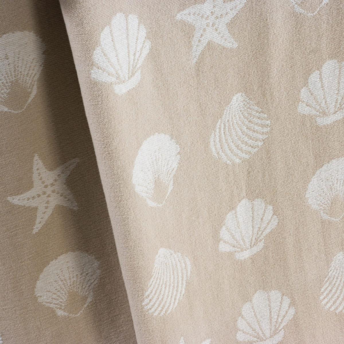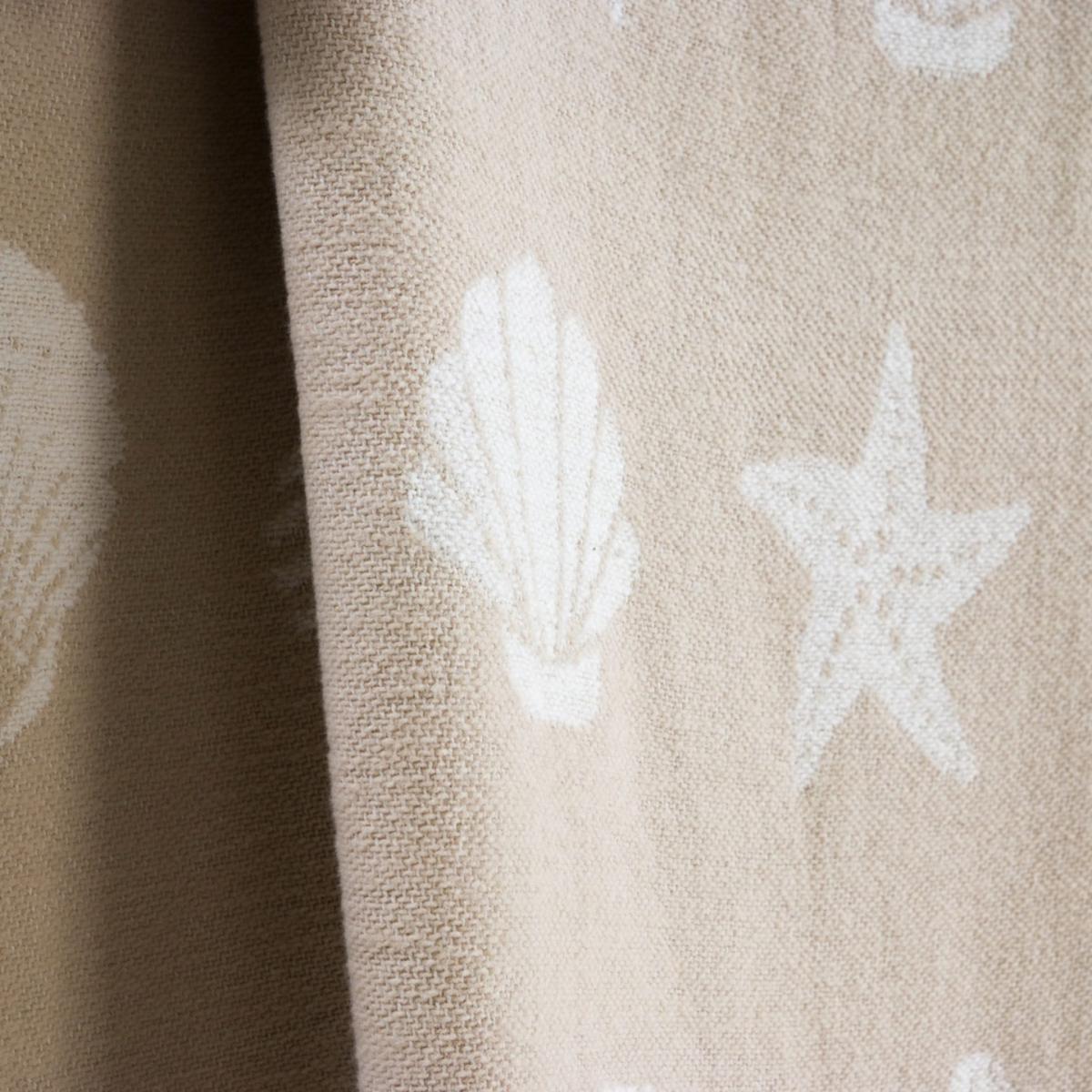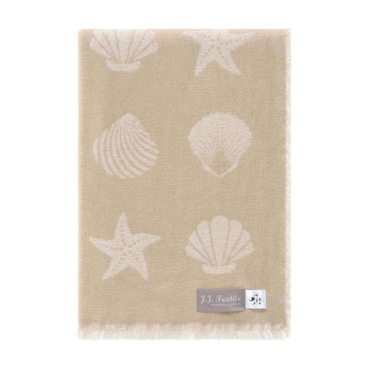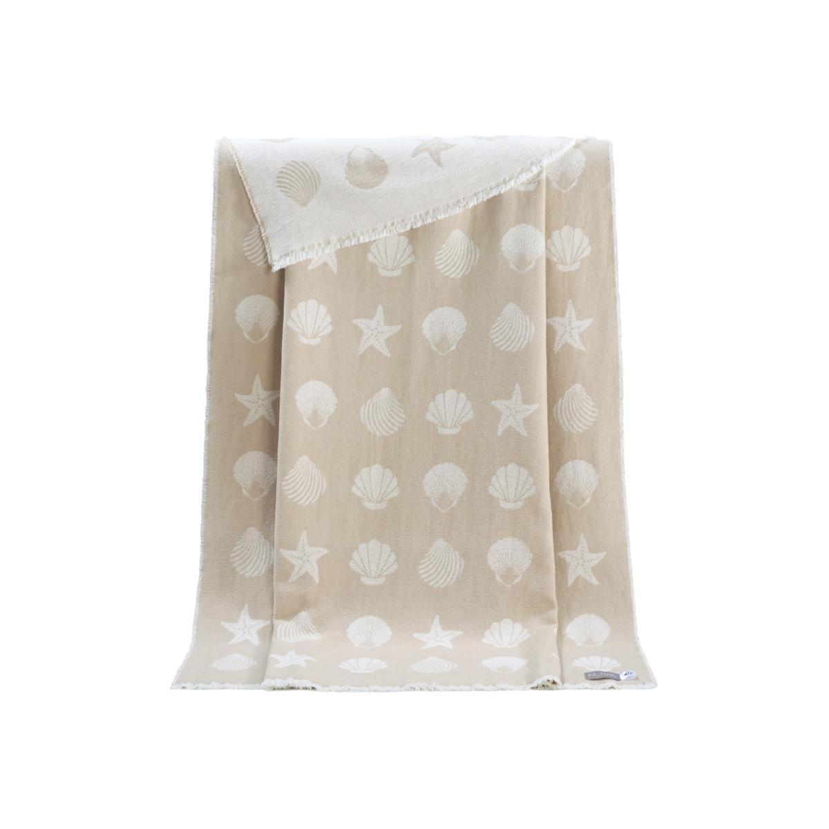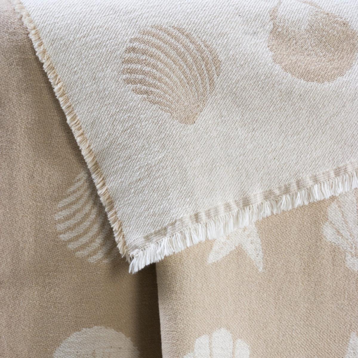 Reminiscent of the beach with its sandy beige colour scheme and whimsical seashell design- all that’s missing is the sound of the waves! You can relive happy beach holidays every day of the year through this playfully elegant blanket. As this light blanket is woven from pure cotton, it is thermoregulatory and very breathable, meaning it’ll keep you cosy warm in winter and cool in summer. Featuring a fully reversible design and a small cotton fringe, you’ll always want to keep this versatile blanket handy all year round. Happy living with friendly designs!