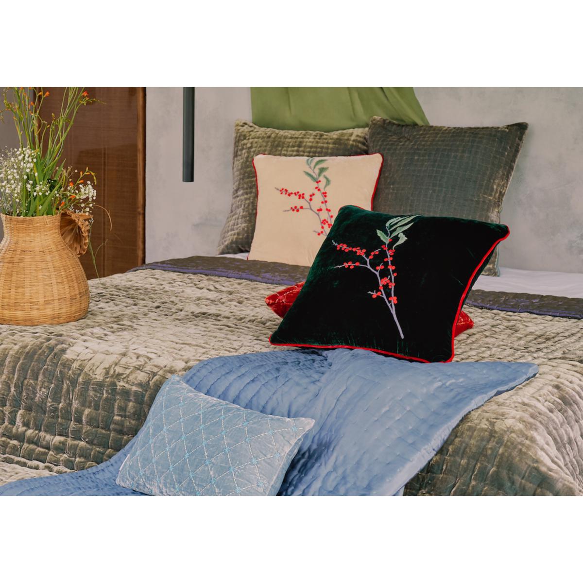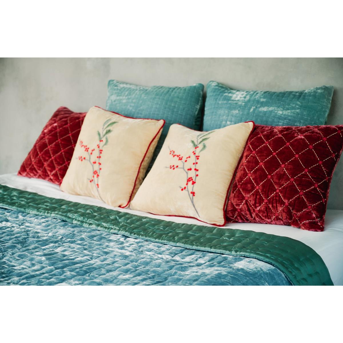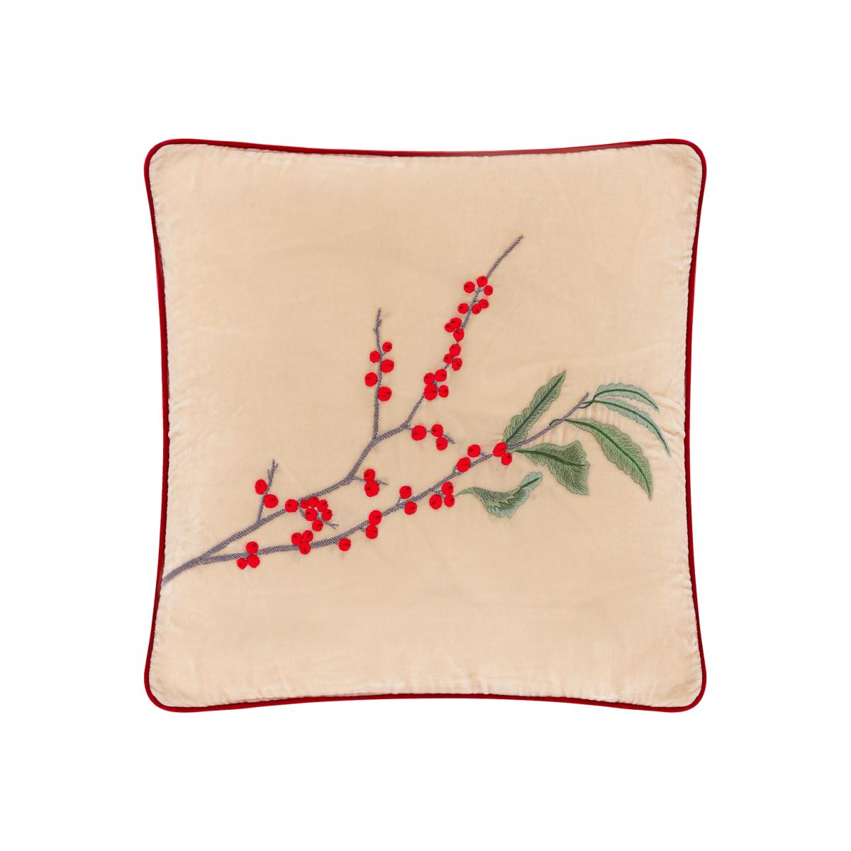 Celebrating the new season with intricate hand embroidery berries patterns in deep & bold shades, in signature designs, adorns a selection of bedding and home accessories. Berry Square Cushion l Sand x French Rose Inspired by the winter berries, we are proud to introduce our limited edition - Berry Square Cushion with hand embroidery details of the Holly Winter Berries for the Fall/ Holiday season. Crafted from fine Velvet with rich embroidery details. The statement for the news season and instantly brighten up your home.
