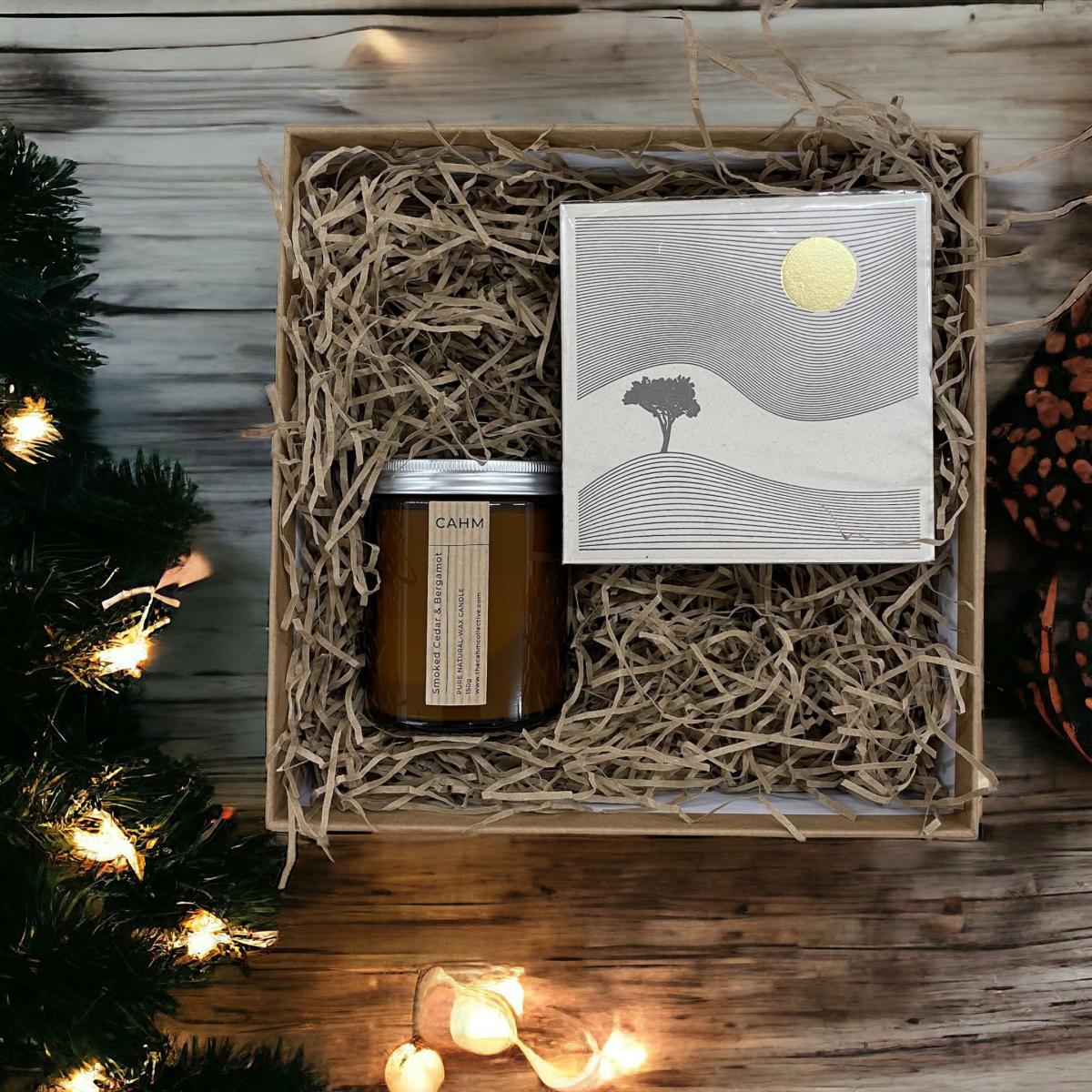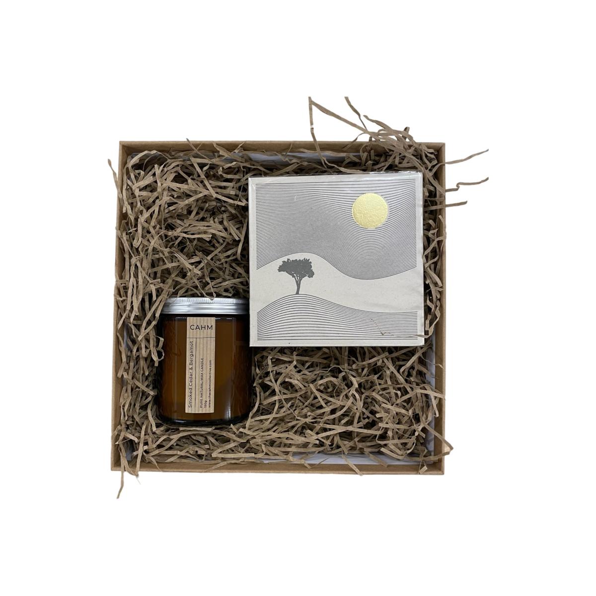 A gorgeous gift of CAHM with our Smoked Cedar & Bergamot amber jar candle paired with a beautiful box of matches from our friends at Archivist in a black fern design. Boxed in a luxurious CAHM kraft gift box and tied with Christmas twine - we've done the hard work for you, just add a tag! Set contains 1 x 150g Smoked Cedar & Bergamot Amber Jar Candle and 1 x Archivist box of matches. Add a gift message in the box before checkout and we will hand write it on the gift tag for you.