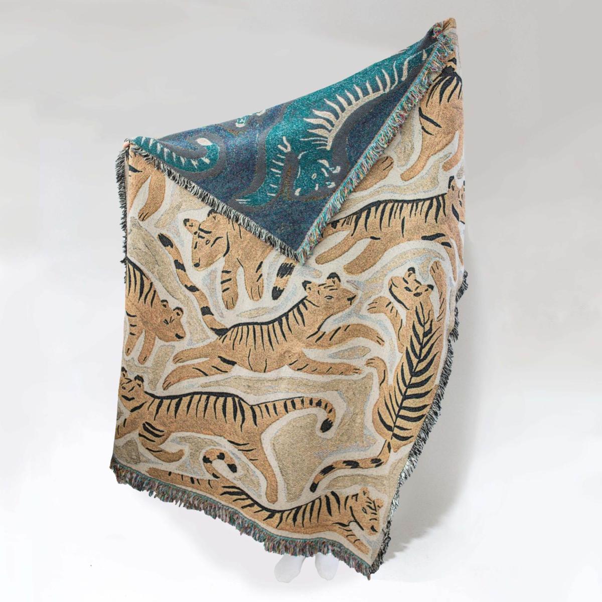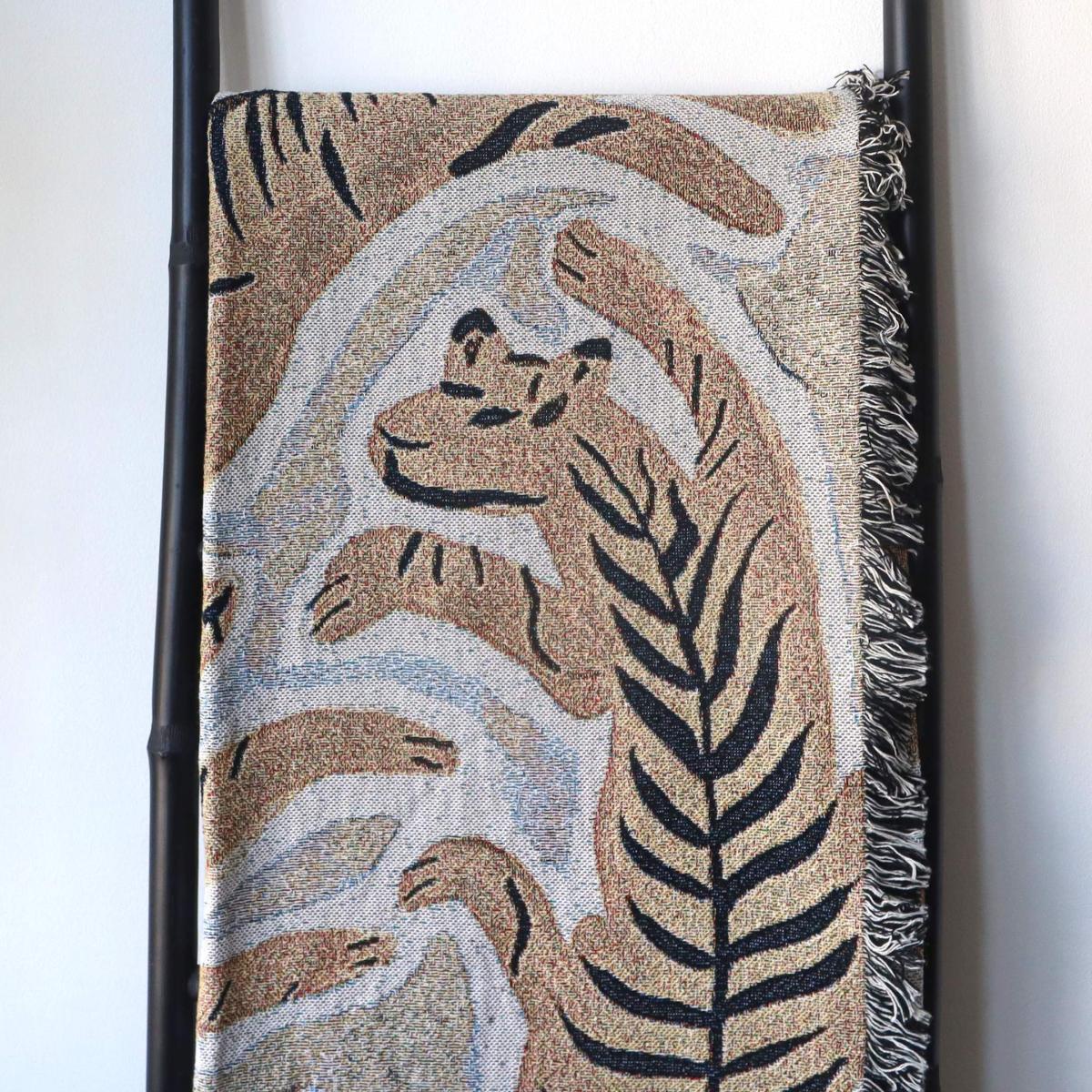 Rosanna Corfe is excited to launch her new collections of recycled cotton woven throws including this playful yellow tiger design. A brilliant way to add some pattern and colour to your bedding, sofa or even hang on your wall as large tapestry art.
