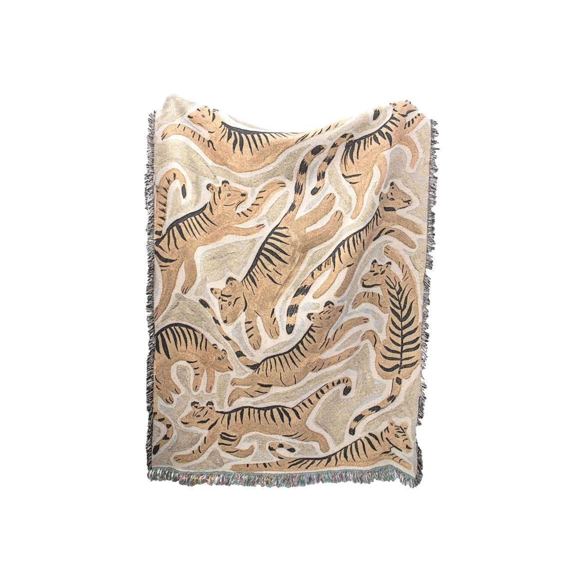 Neutrals / Black / Yellow Tigers 01 Woven Throw One Size Rosanna Corfe