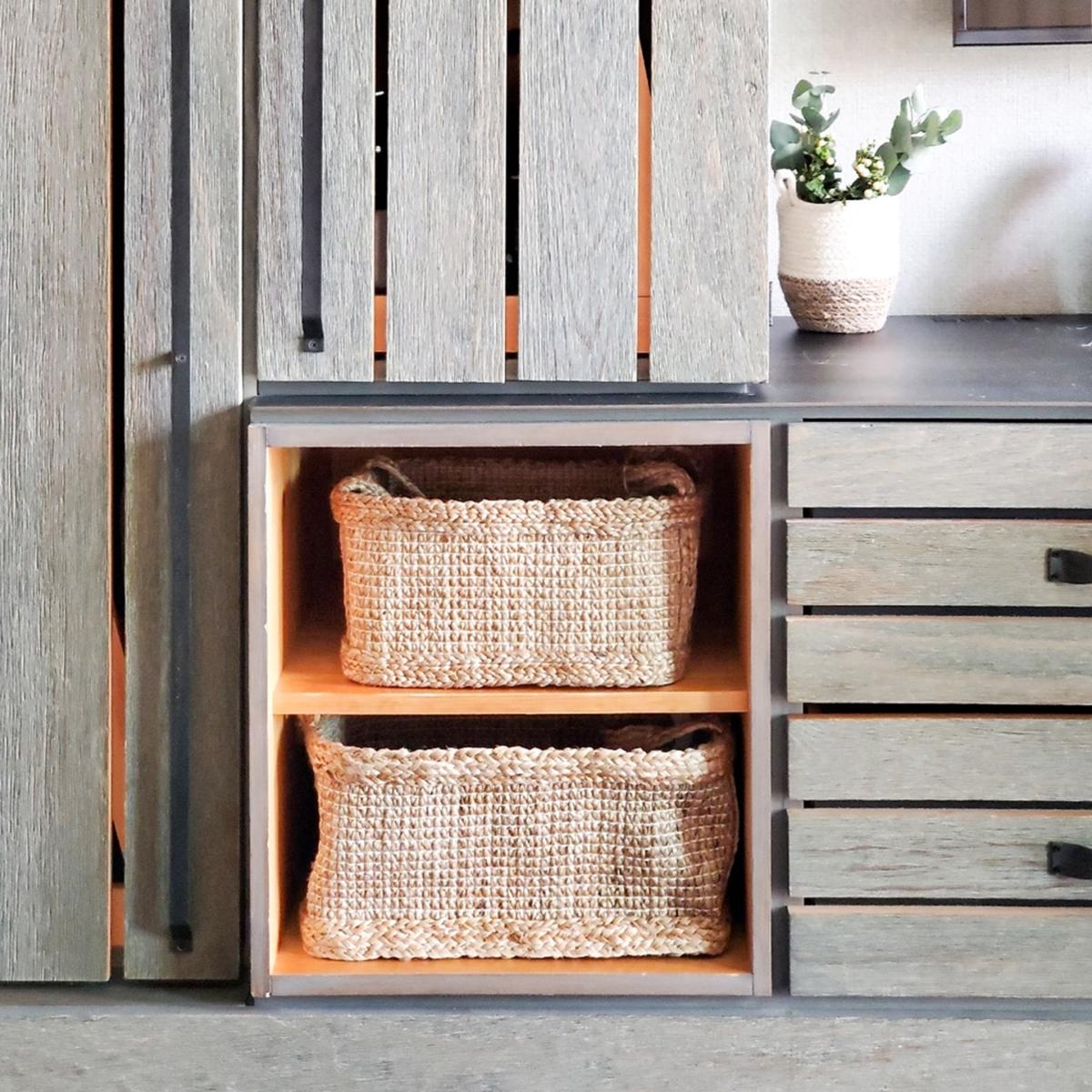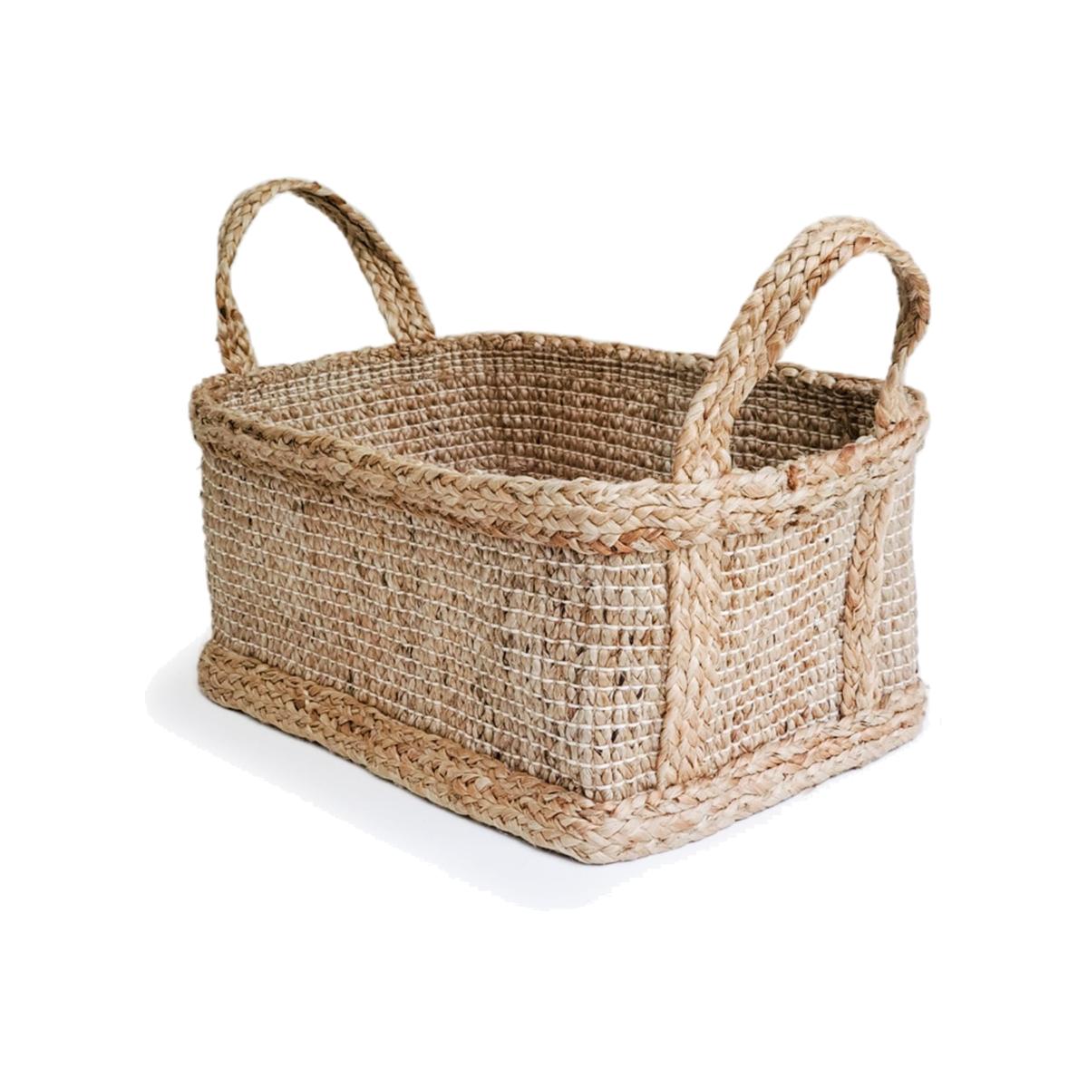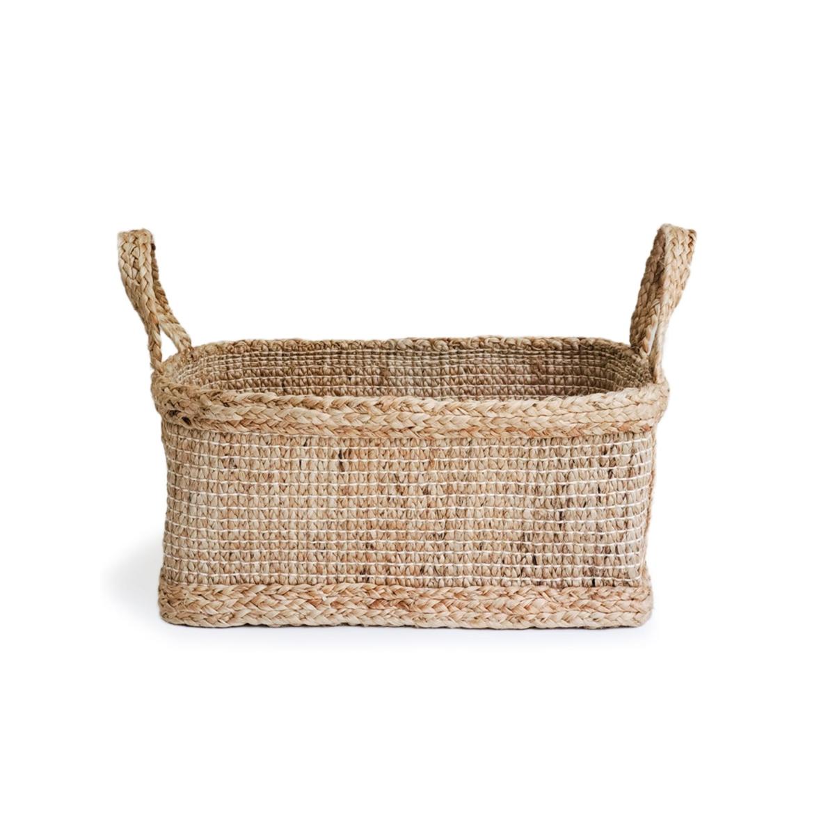 Beautifully handwoven with thick braided jute, this rectangular wicker jute basket will be the new storage option for your home or office. Perfect for organizing everything from hand towels, rolled towels or toilet rolls, scarves, socks, cleaning supplies, napkins and cutlery, children's toys, pet supplies, seasonal declutters... the options are endless. Each product is designed and curated by KORISSA, sustainably handmade by Fair Trade artisans in Bangladesh.