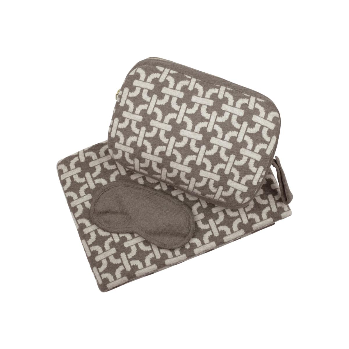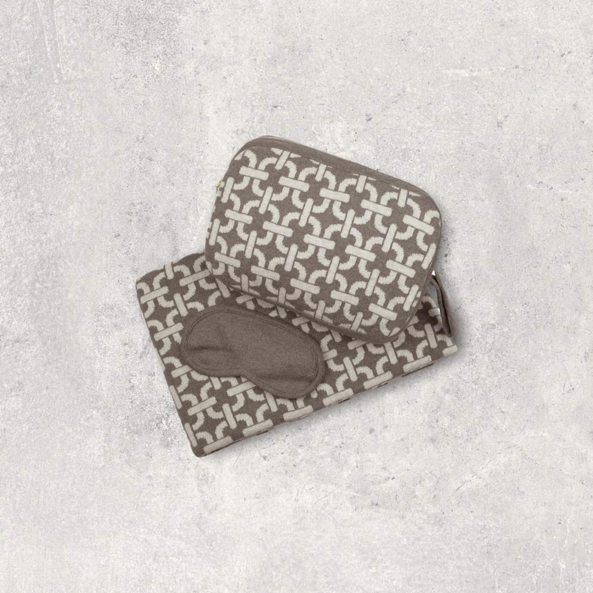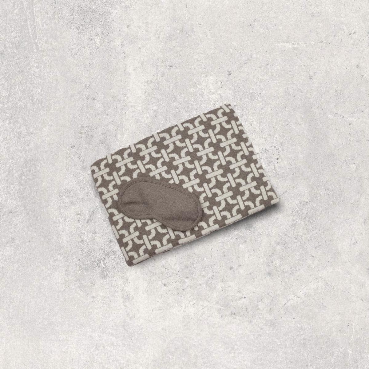 A beautiful chain of events can be seen inside this luxe link pattern. Reminiscent of a high-end handbag, the elegant graphic chains elevate our easy-to-carry blanket and sleep mask set. Take it on your next flight for a soft safe nap wrap or pop it in your bag for a weekend with friends. Great gift for guys or girls.