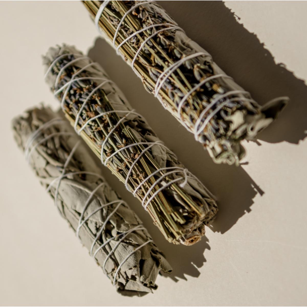 Californian White Sage with Lavender(x3) Californian White Sage with Lavender, with its high vibrational energy, is used for bringing positivity into a space. It opens the heart chakra, calms the mind, provides protection and eliminates feelings of fear and worry. Burning White Sage with Lavender helps to guard against psychic attacks while simultaneously bringing light energy into your home.