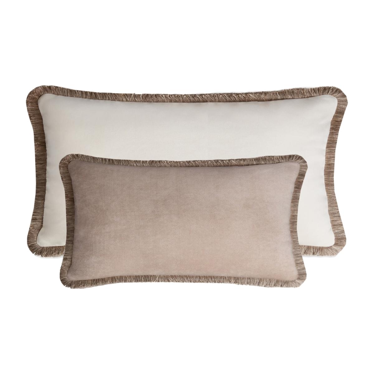 The contrasting chromatic scheme characterizing these couple of cushions lends it a distinct luxe yet restrained allure. It features soft padding in polyester fiber, while its rectangular silhouette is outlined by bold garnet cotton trimming outlining the light-beige velvet upholstery. The possibility to easily remove the cover simplifies its cleaning process. These accent pieces will make an eye-catching addition to a sophisticated living room, study or bedroom. All pieces are marked by simple versatility and charming hues that are easy to mix and match. Handmade in Italy.