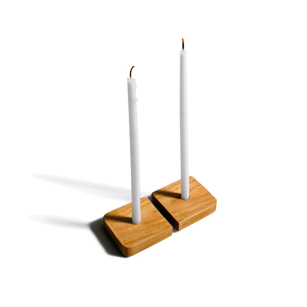 Discover a bold new way to set the mood with our Enlightened candle holders! This set of two salvaged wood holders will add a touch of contemporary charm to any night in. Light the way and ignite an unforgettable experience! Finish:Tung oil Each piece has slight color variation due to the different wood species Each piece is unique. Creating second chances. For people and planet. We create thoughtfully designed objects that reincarnate construction waste and empower formerly incarcerated people with a fresh start. Designed and handmade with T L C in San Francisco. Time to ship: about one week. Wash with soapy water. No abrasives.
