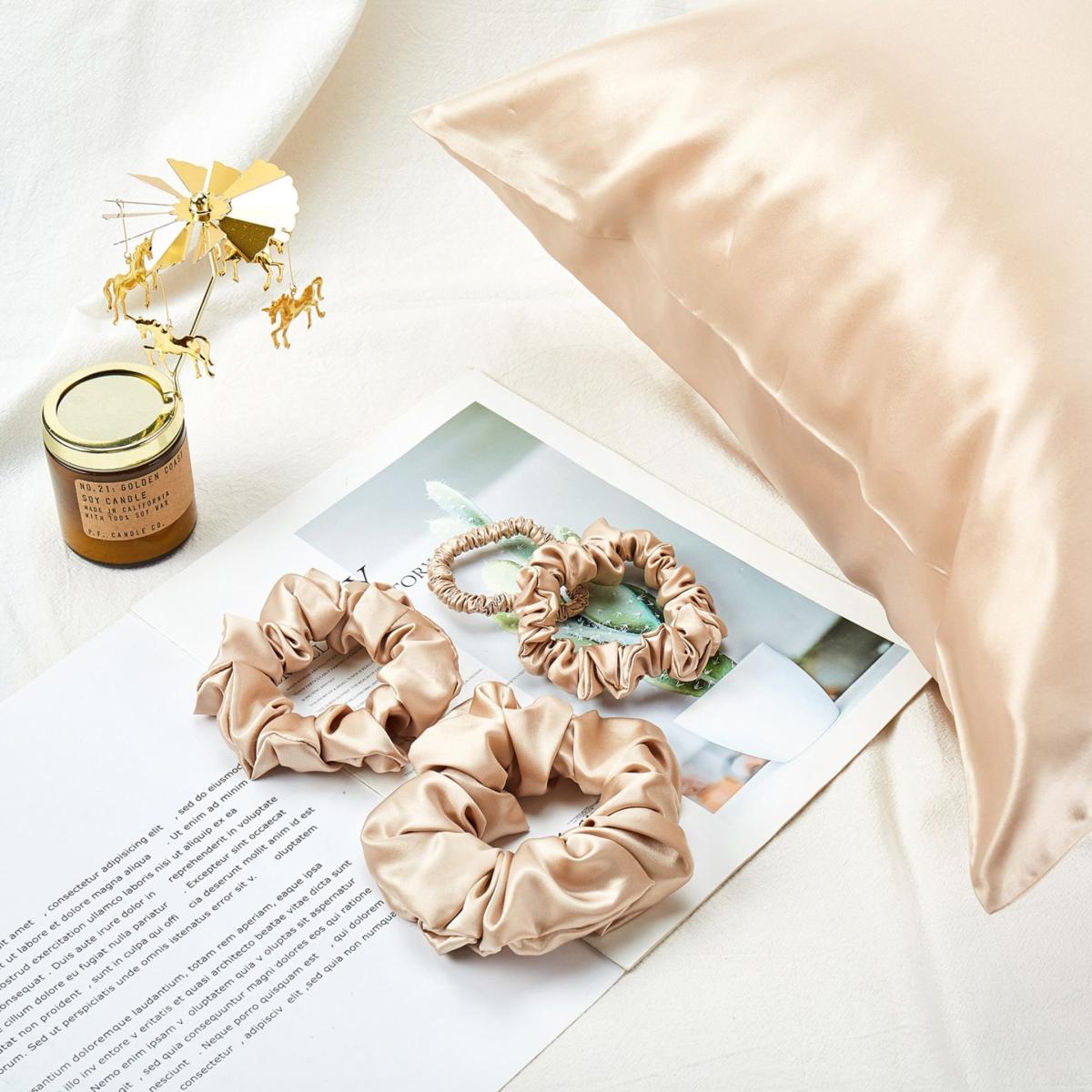 This is the gift set for someone whom you truly care about. With sumptuous silk, you are sending her the gift of hydrated hair, smooth skin, and night after night of peaceful sleep. Imagine her smile as she reaches back to tie her hair each morning. We strive to meet the best standards on the market, choosing quality tested, Grade 6. A pure mulberry silk and plant-based dyes. Even our eye masks are filled with long strands of mulberry silk, softly stroking her eyes to a sweet slumber. Designed in Toronto. You will receive: One pillowcase One eye mask Four scrunchies: 0.4, 0.8, 1.4 and 2 inches Material 100% long strand mulberry silk 22 momme (600 thread count) Extra shiny silk charmeuse Grade 6a (highest grade) Non-toxic dyes