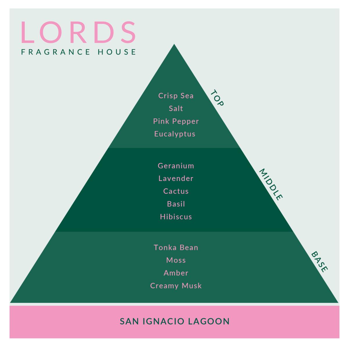 Notes of sea salt, pink peppercorn, and cactus flower fill this scent with a crisp freshness over a heart of geranium, lavender, basil, algae, eucalyptus and hibiscus notes. Tonka, moss, amber and musk add a creamy depth to the base of this fragrance.