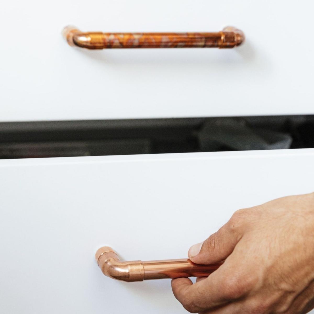 Transform your drawers, cabinets, and doors with these stunning eco-friendly handcrafted copper handles. Each handle is meticulously shaped by skilled artisans, showcasing the natural beauty and durability of copper. The warm, earthy tones of the copper bring a sophisticated and timeless appeal to your home, blending effortlessly with both modern and traditional interiors. Perfect for those who appreciate fine craftsmanship and sustainable materials, these handles are a simple yet impactful way to elevate your living space.