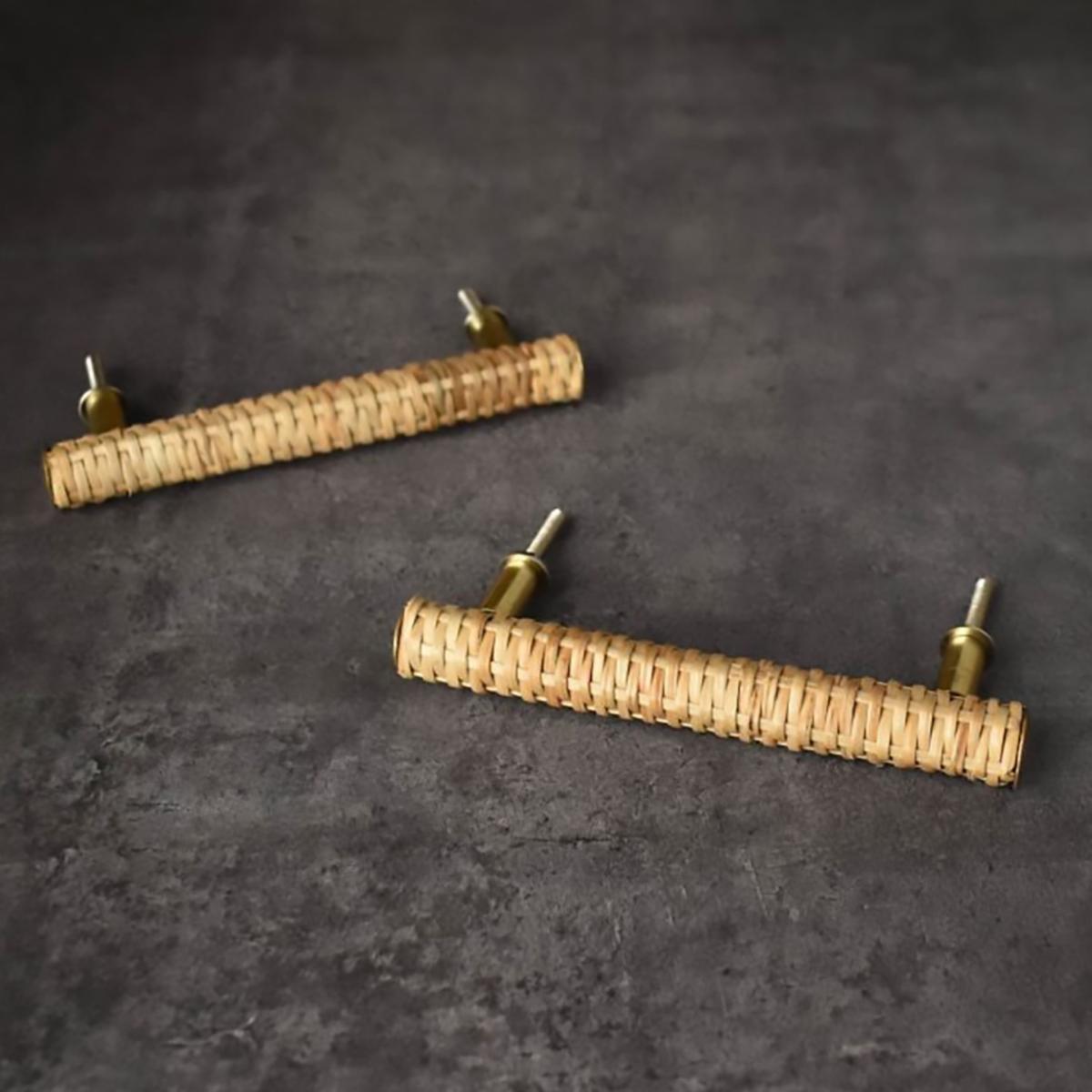 I love this handle set because it combines natural rattan with a relaxed, boho vibe, making it a versatile addition to various interiors. It works especially well in eclectic, coastal, or modern rural schemes where organic textures add warmth and character. Practical styling tips include pairing it with light wood cabinetry or painted in muted tones for a seamless look, or using as decorative wall accents if you prefer a more creative approach. Keep in mind its sculptural quality, so placing it on display or using it to enhance furniture pieces can really elevate the overall aesthetic.