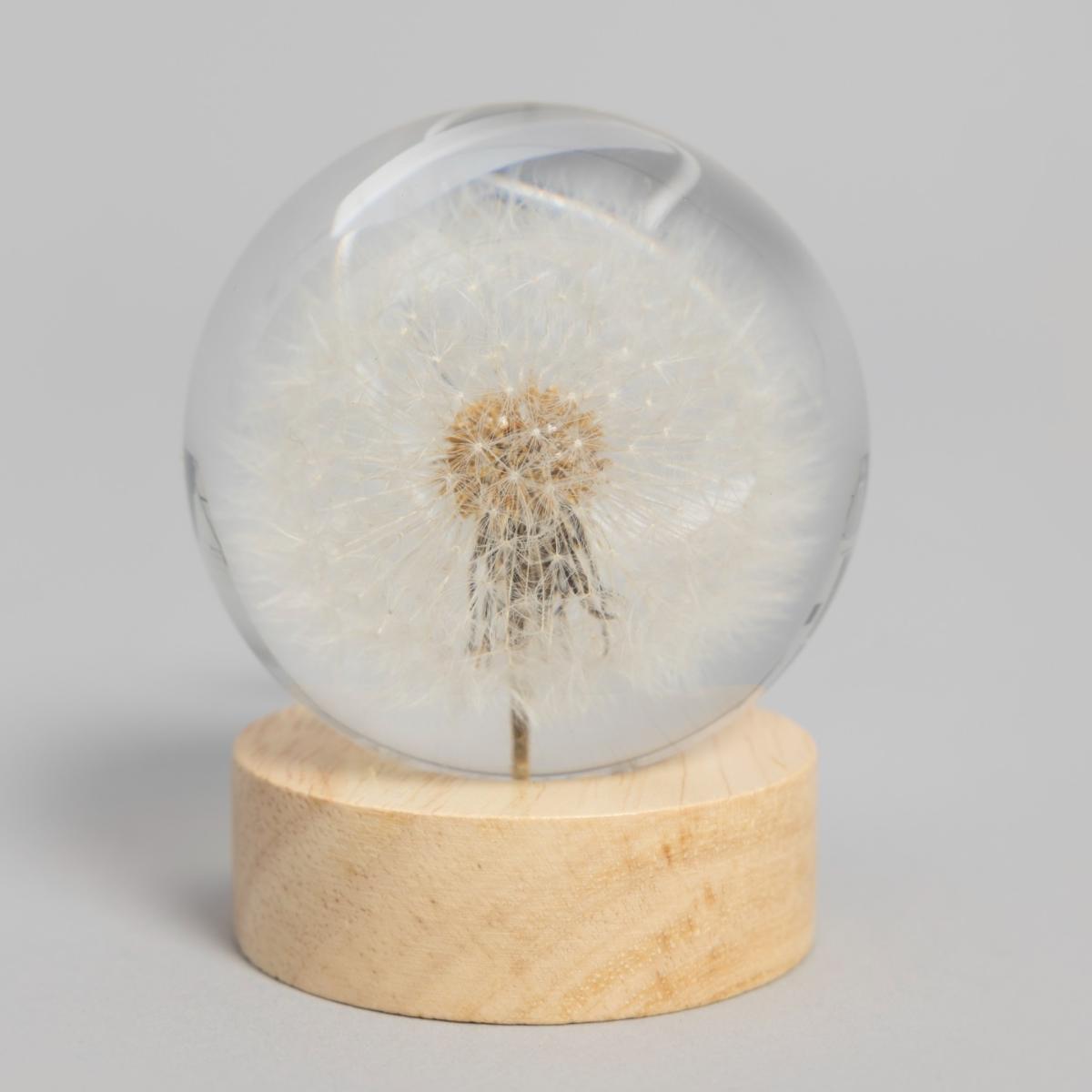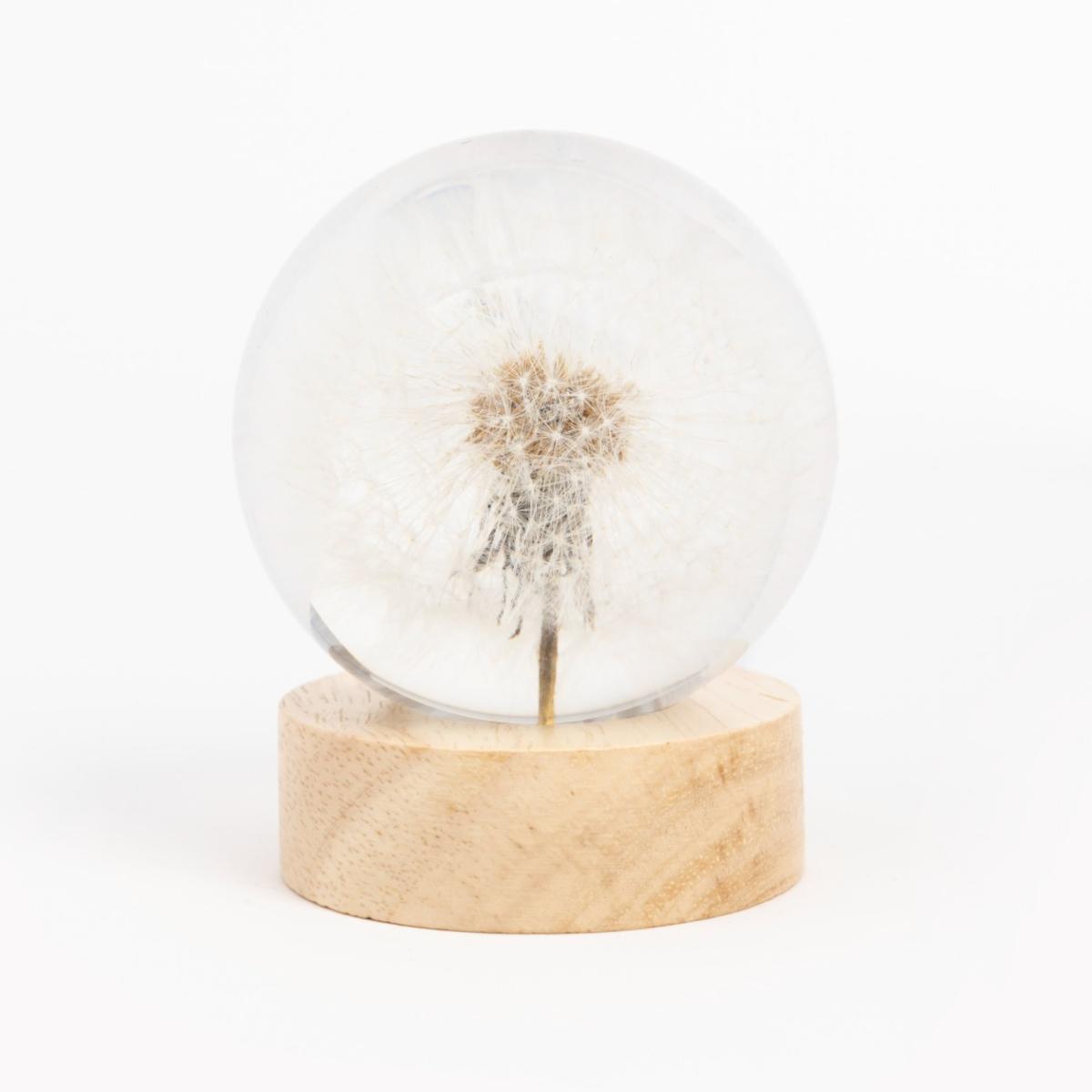 Capture the fleeting beauty of nature with this enchanting Dandelion Wish Globe. A real dandelion, delicately preserved in crystal-clear resin, rests atop a natural wooden base, bringing a sense of wonder and serenity to any space. Each dandelion is carefully handpicked and encased, ensuring that its intricate details and light, airy structure remain untouched—like a wish frozen in time. Perfect as a unique home decoration, meditation piece, or meaningful gift, this globe serves as a gentle reminder to cherish dreams and embrace nature’s magic. A symbol of wishes, dreams, and new beginnings, let this dandelion globe inspire you every day.