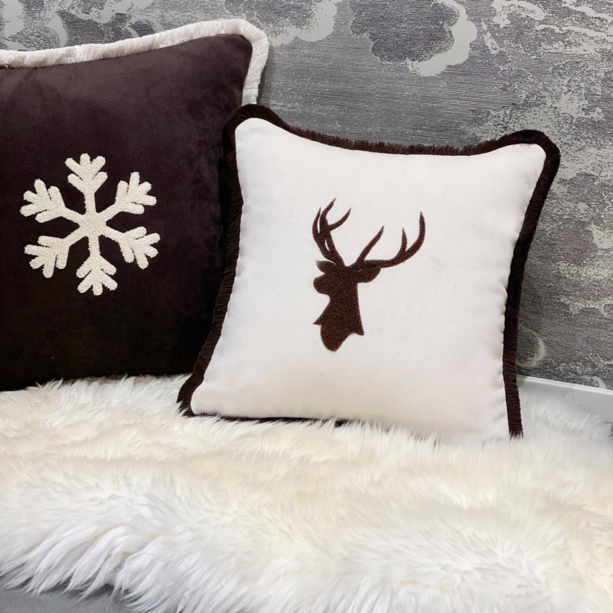 Sophisticated and elegant, the Winter Collection is the last outstanding fashioned creation. Velvet cushion with a sophisticated elk embroidered, with a contrasting colour fringe. Simple, elegant, and classic with modern refined texture these stunning pillows are thought for a classic and contemporary interior Christmas decor either. The fabrics are handmade of Italian refined high-quality velvet. The customizable fringes and the accurate color combination characterized LO DECOR style and high-level craftsmanship. Removable and washable pillowcases with a stuffing. Beige with brown fringe.