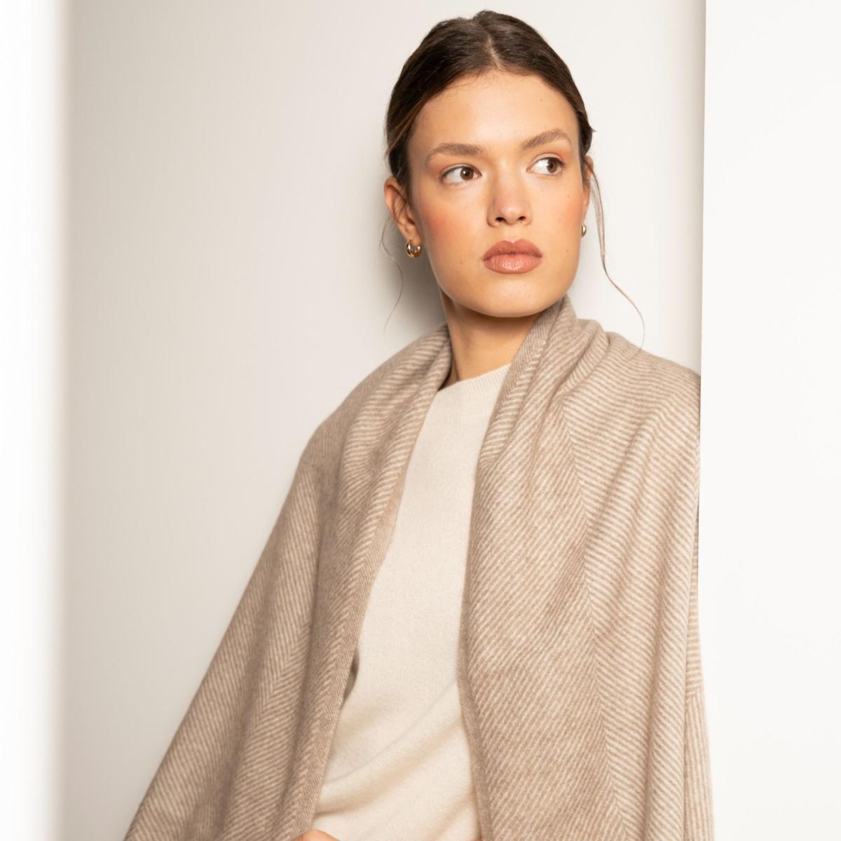 There´s nothing more luxurious and cozy than a cashmere blanket. Not only it looks elegant in you couch but it also feels incredibly soft, light, warm and comfy. This blanket has been made with 100% pure organic cashmere of the highest quality. This organic piece has not being treated with any type of chemical product or pesticide. It´s 100% natural, undyed and unbleached. The organic colors beige and brown are the natural cashmere goat colors. With herringbone design, this blanket is beautiful, elegant and easy to match with any home decoration. Thicker than the other ones, this blanket has the perfect size for the couch or the bed 200 x 145 cm.