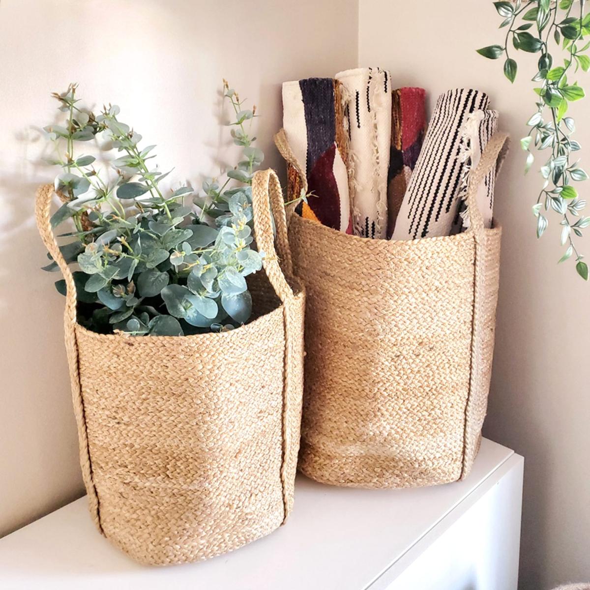 I love these baskets because of their versatile natural look and practical handle design, making them both decorative and functional. They work beautifully in neutral or boho-inspired interiors, but can also add texture to more contemporary spaces. Use them as stylish storage for throws, magazines, or even as statement planters with a liner. When styling, group them on open shelves or beside furniture to create a relaxed, curated feel. Their simple aesthetic makes them adaptable across various colour palettes and styles, making them a practical yet chic addition to many rooms.