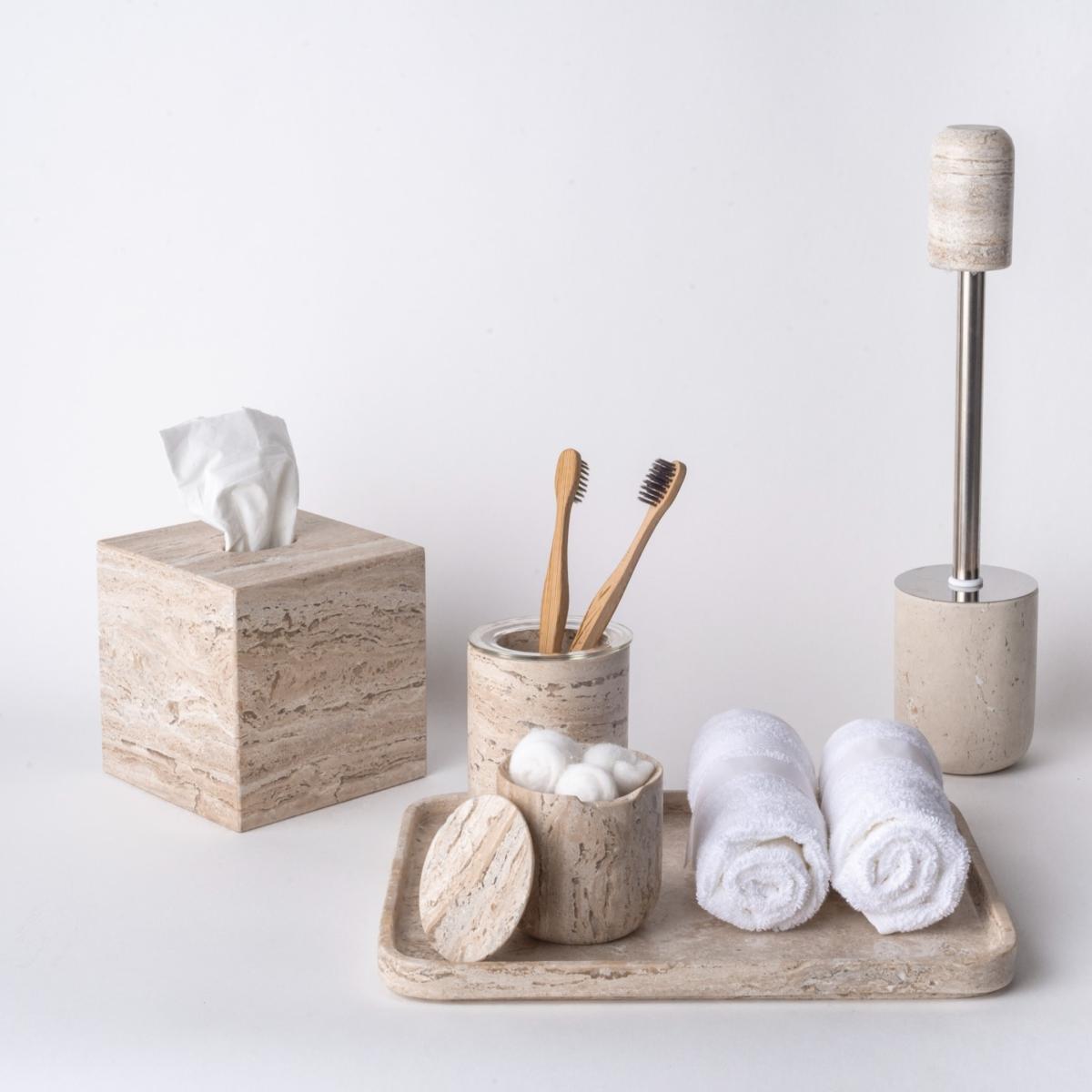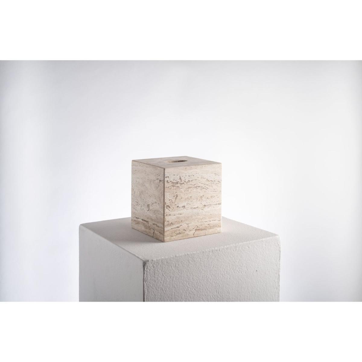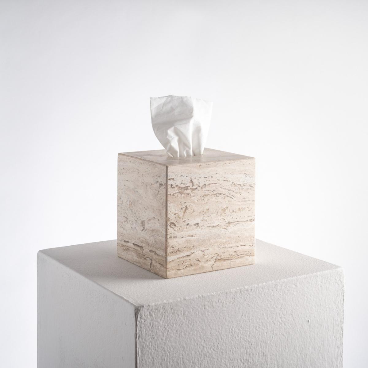 Hand-carved marble tissue box from the Less Is More collection. With simple and elegant shapes as this collection is distinguished. Designed to precise measurements to cover the conventional tissue boxes you find everywhere. Anywhere you place it, bathroom, bedroom, desk and tables, it is an accessory that will look perfect. FROM THE LESS IS MORE COLLECTION