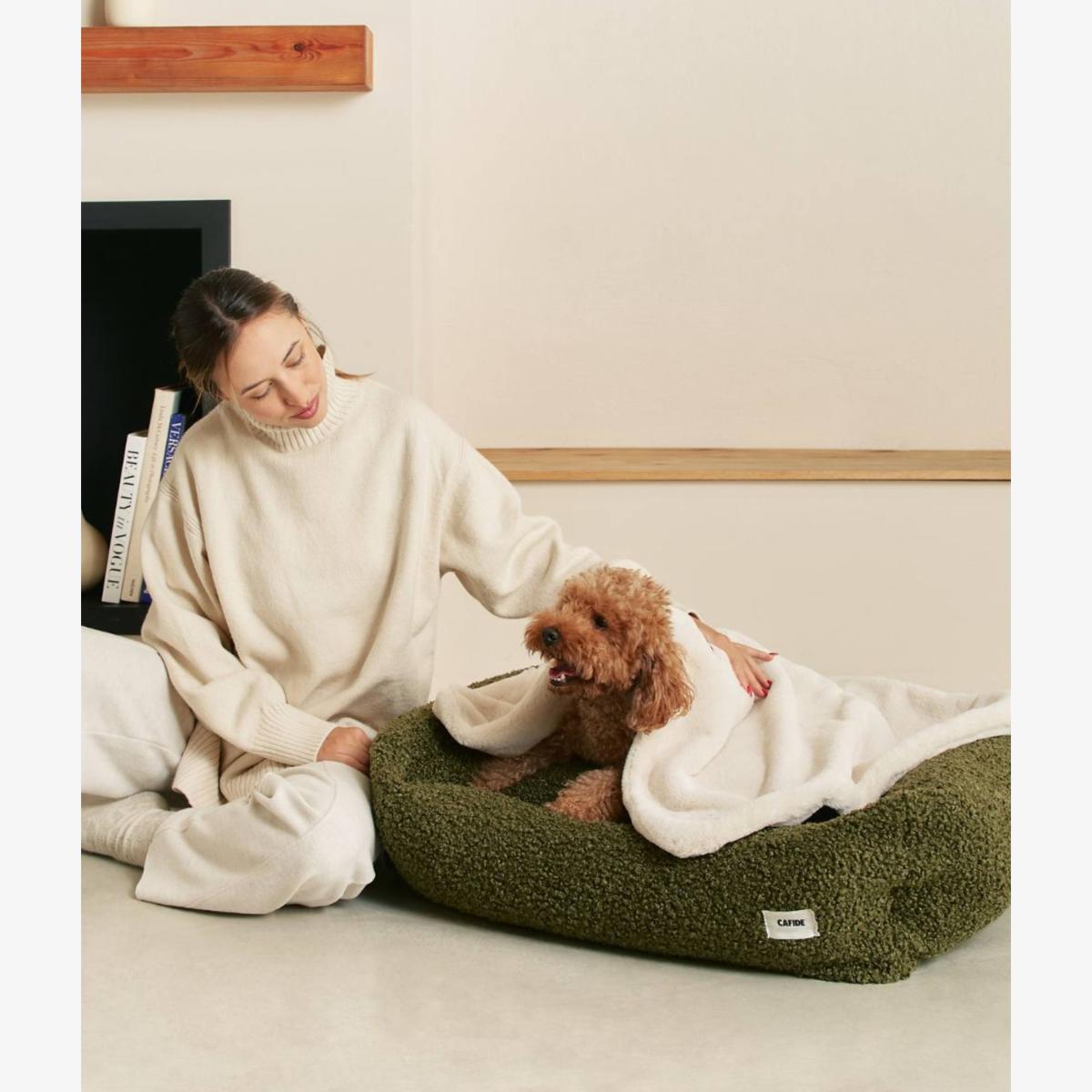 Dog blanket made from faux fur fabric by hand in Europe. It is the perfect complement for your dog's sofa or bed for the coldest days. We have selected the perfect measurements to fit our beds. They are also machine washable and perfect for dogs looking to hide and curl up.