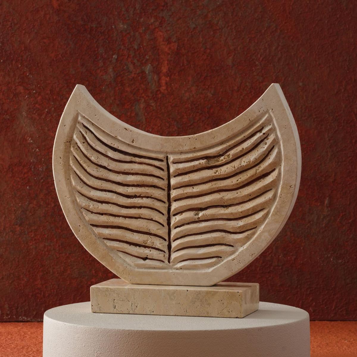 Illuminate your interior with the celestial charm of the Natural Travertine Crescent Moon Decor, a sculptural masterpiece that blends organic textures with minimalist design. Handcrafted from premium natural travertine, this crescent moon-shaped piece features delicately carved, wave-like linear patterns, evoking the gentle flow of water or the graceful lines of lunar landscapes. Its smooth, curved silhouette contrasts beautifully with the raw, earthy texture of the stone, creating a striking visual harmony. Resting on a solid travertine base, this decor piece adds an artistic, nature-inspired element to modern, bohemian, or minimalist interiors.