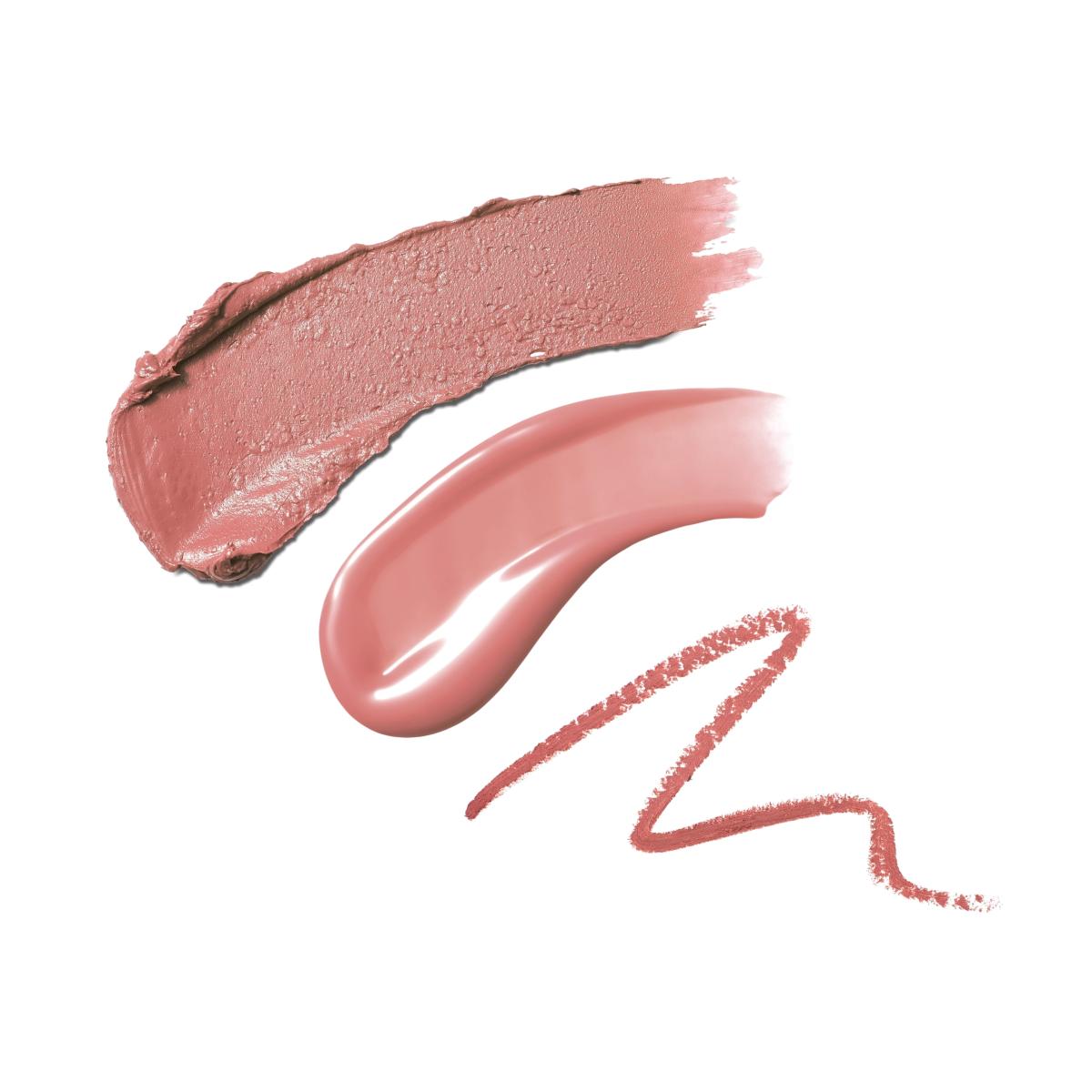 A carefully edited, trio of lip products to take the guesswork out of choosing the right shades for dreamy nude lips. This perfectly matched wardrobe includes:Long wear lip line in shade Buff. This incredible long wearing dusky, pink nude liner is super smooth and highly pigmented, lines and defines effortlessly with an easy to use tapered tip and an extra built in sharpener. Colour intense cream lipstick in Muse is a timeless dusky pink nude that delivers a full pigment lip colour, and contains Vitamin E for an ultra soft and hydrating feel. Colour gloss ultimate shine lipgloss in Minx. This gorgeous dusky pink gloss is enriched with Vitamin E and botanical extracts lavishing the lips in smooth, comfortable colour, with a high shine.