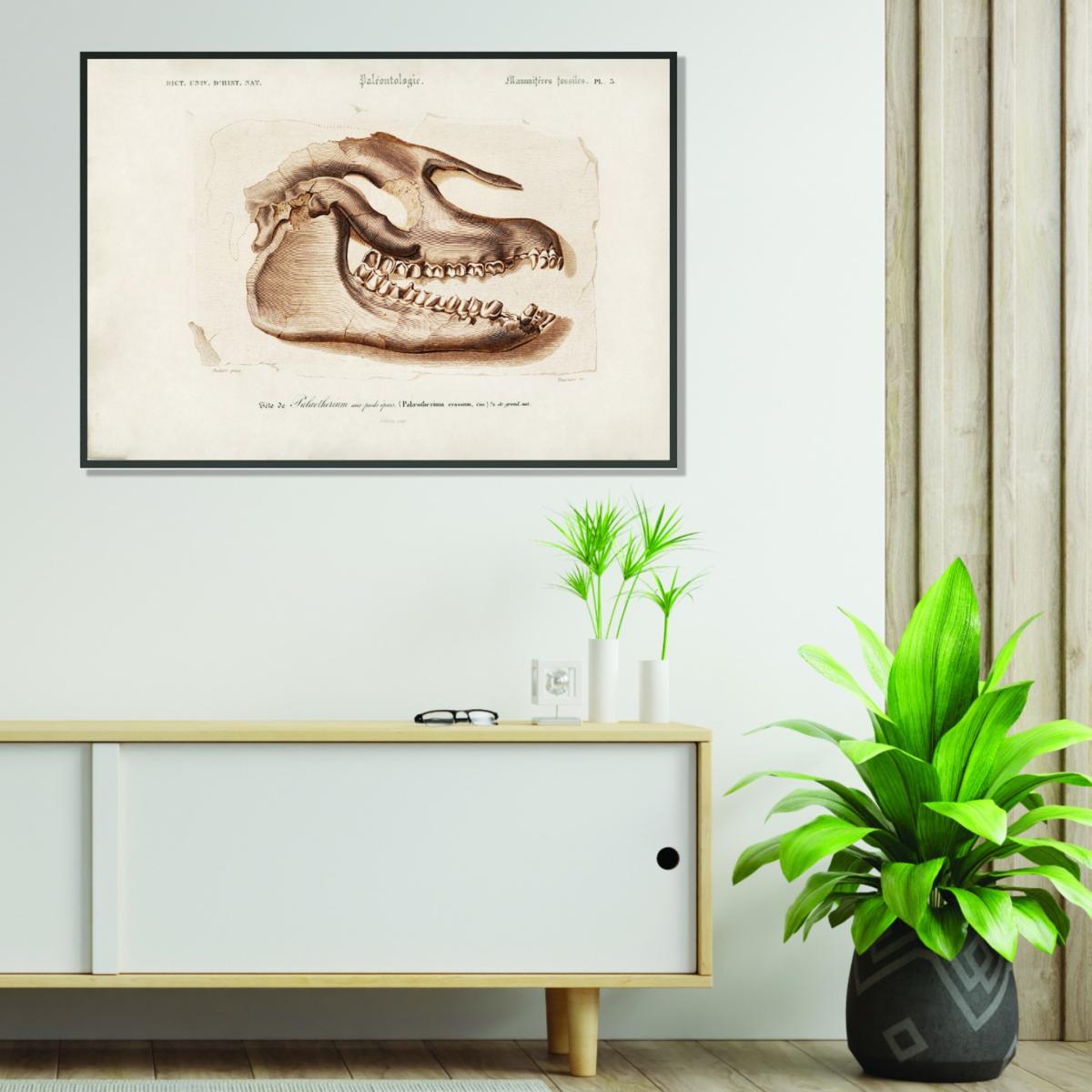 I love this print because it offers a neutral, intriguing focal point that pairs well with both modern and traditional interiors. Its subdued tones and scientific aesthetic make it ideal for a monochrome or minimal colour scheme, adding an element of sophistication without overpowering the space. It works particularly well in studies, living rooms, or hallways where subtle interest is welcome. For styling tips, consider placing it above a sleek sideboard or console table, paired with other vintage-inspired pieces or framed in a simple, matte border for a contemporary touch. It’s a versatile statement piece that can effortlessly elevate an understated decor scheme.