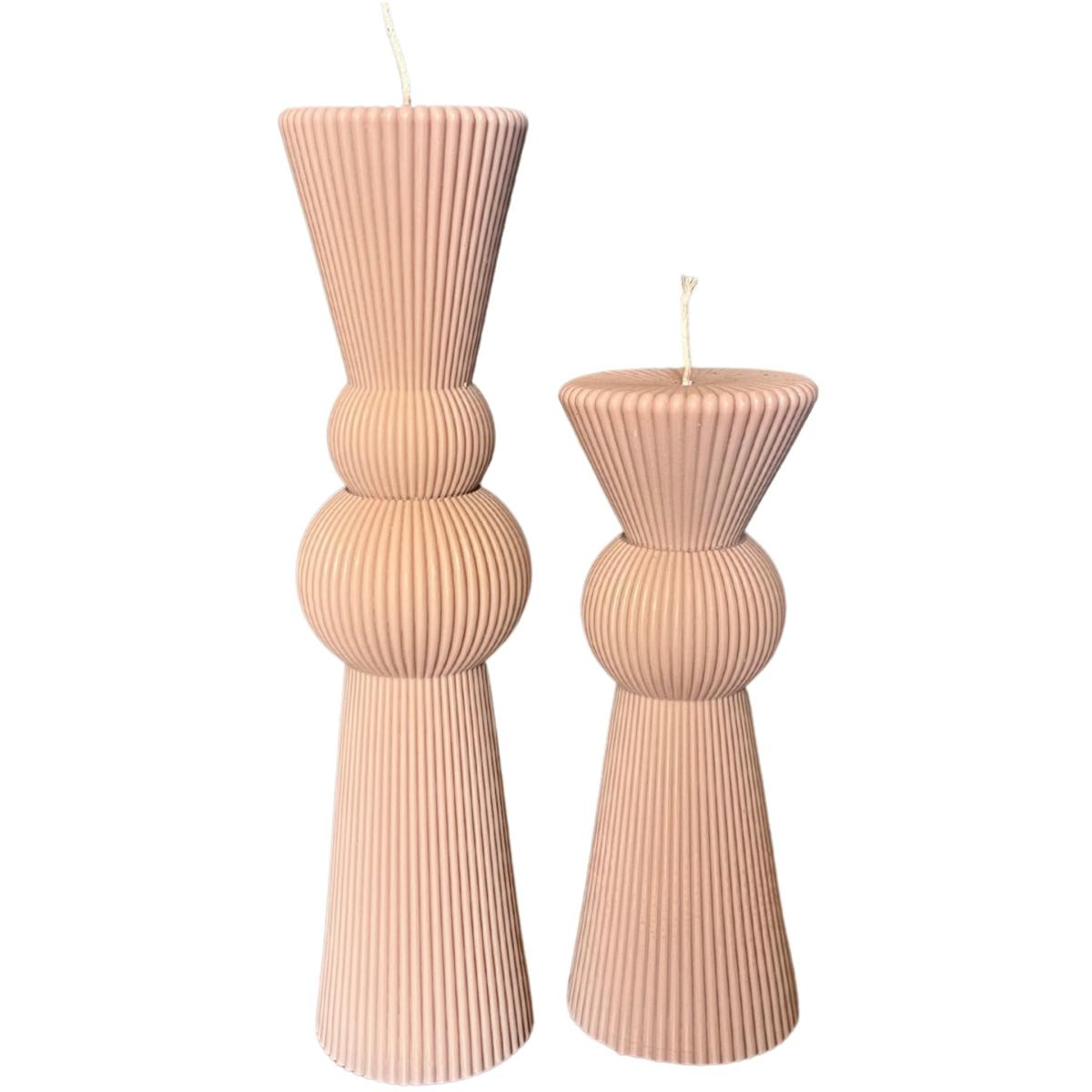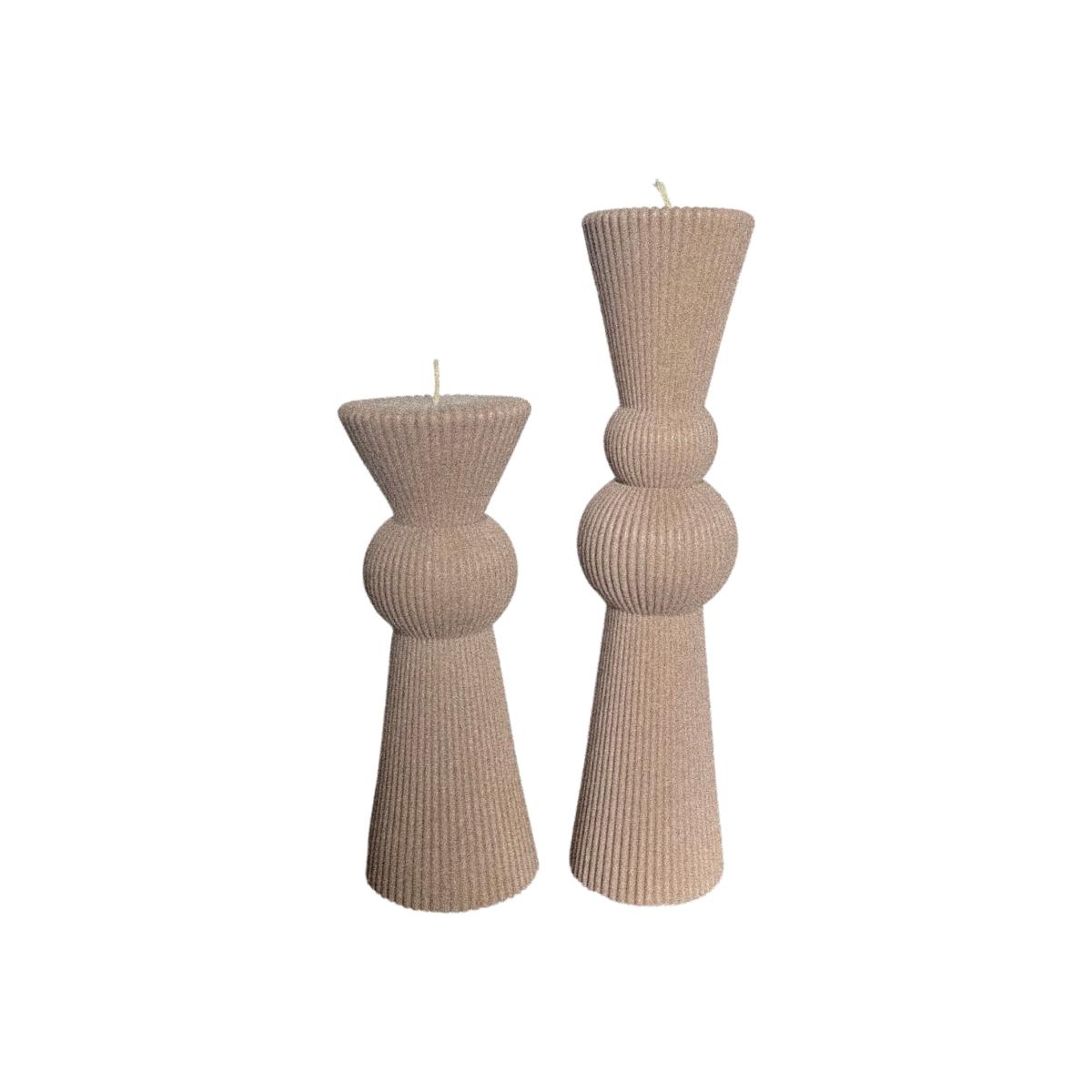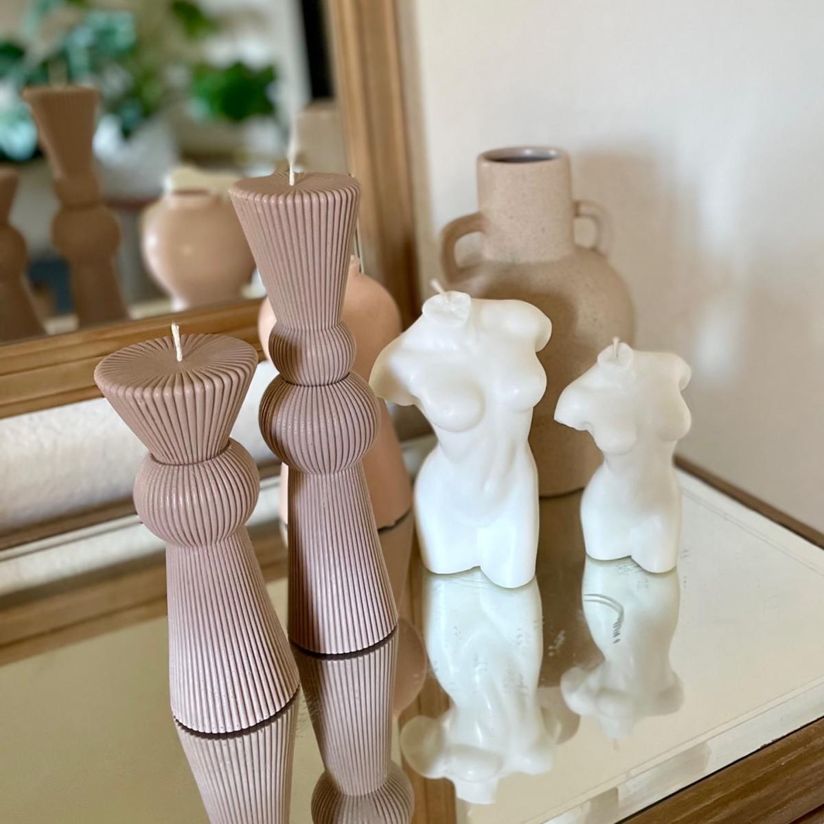 Chandelle candles come as a duo. Height 15 inches and 13 inches. We recommend using the candles as part of your room decoration, next to a book shelf, on your bathroom counter, or anywhere else! Please note just like real sculptures, these candles have imperfections, this does not affect the quality of the candles