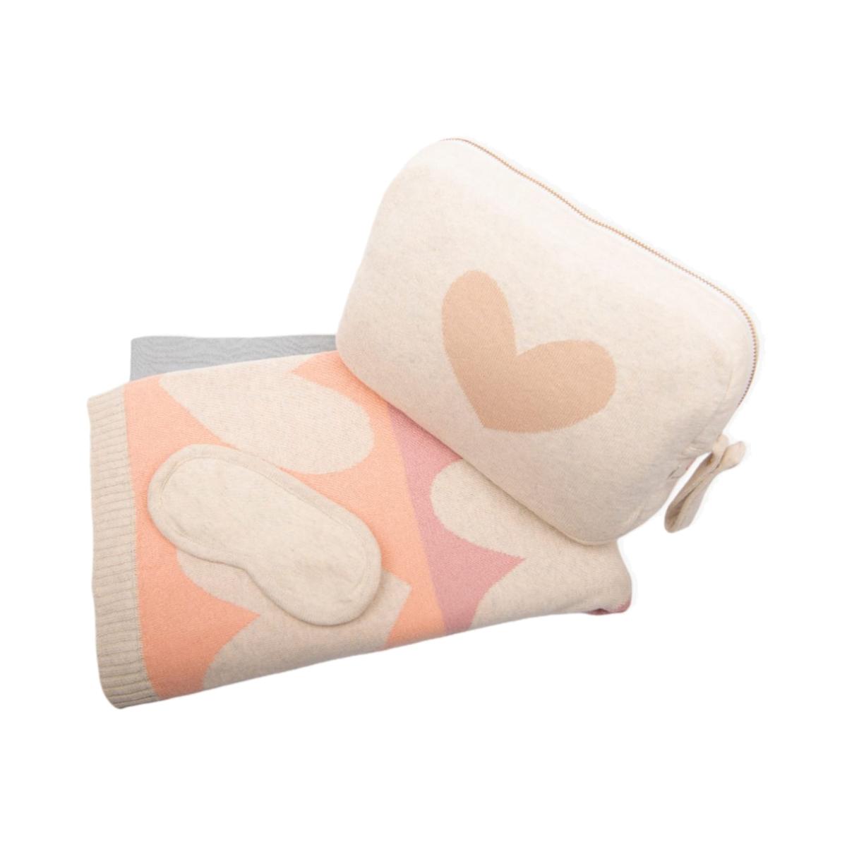 Let’s get to the heart of the matter. Our luxe travel set with a cheerful rainbow of pop graphic hearts has a mod and retro vibe all at once, and it couldn’t be more comfortable. The sweet style and vibrantly fresh colors will wrap you in a soft, warm embrace that will feel like a happy hug.