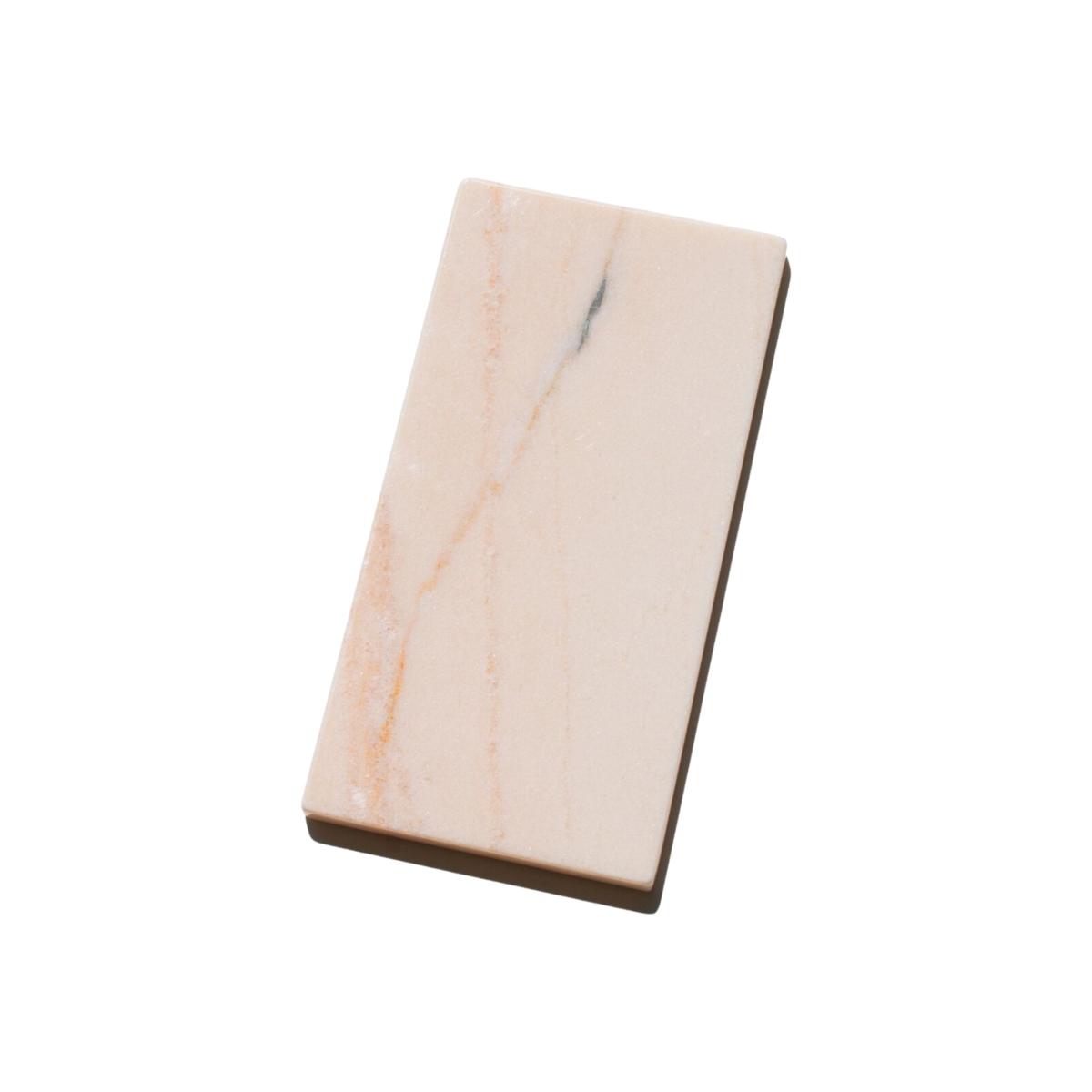 A stone that upon first sight invokes desire. Delicately romantic its peachy complexion leaves behind a blush sheen. Glowing against silk + gold this portuguese marble is sheer luster. Made in Portuguese marble.