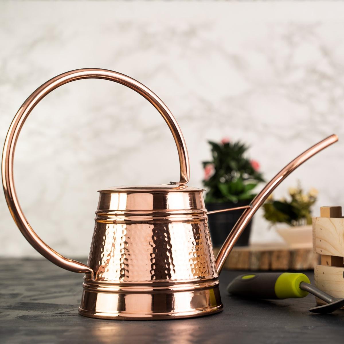 Immerse yourself in the beauty of gardening with our Pure Copper Watering Can, meticulously handcrafted to combine functionality with timeless elegance. Crafted from pure copper, this 2000ml capacity watering can is designed to enhance your gardening experience. The long spout ensures precise watering, making it perfect for caring for plants both indoors and outdoors. Embrace the allure of handmade craftsmanship and elevate your garden with this stylish and durable copper planter vessel.