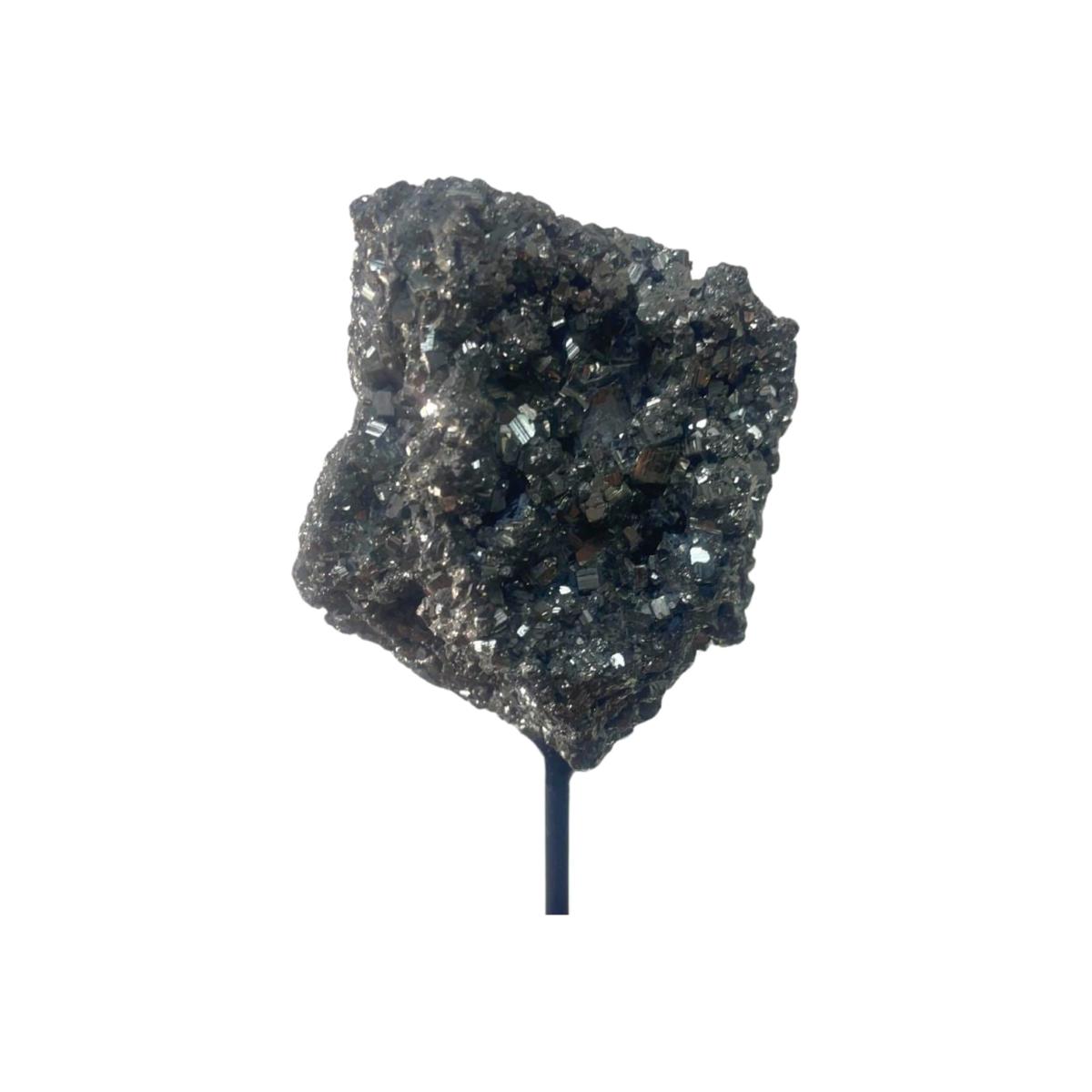 Raw Pyrite Cluster on a metal stand. Pyrite symbolises prosperity and abundance. It can help manifest your future goals and motivates you to pursue them. Pyrite is a crystal of positive energy and light. It encourages you to face your fears, and shields you from negative energy or influences. Pyrite can also alleviate anxiety, especially when it is related to self-esteem and self-worth. Pyrite strengthens the Solar Plexus Chakra because it is connected to the sun. It resonates with both Earth and Fire. Pyrite protects you from negative energy and negative thoughts. It inspires you to be the best you can be, and paves the way to prosperity.