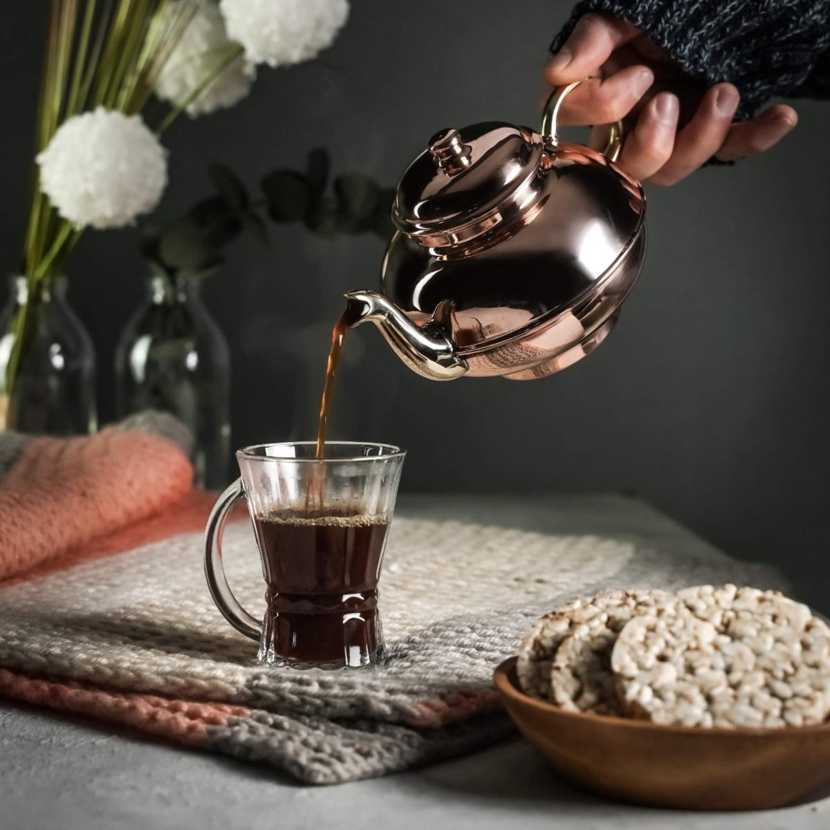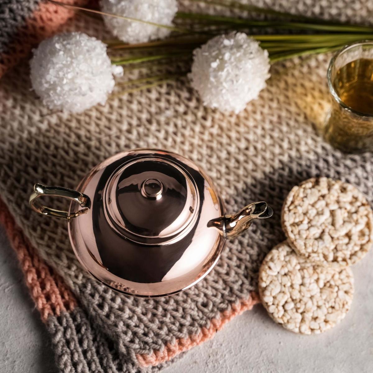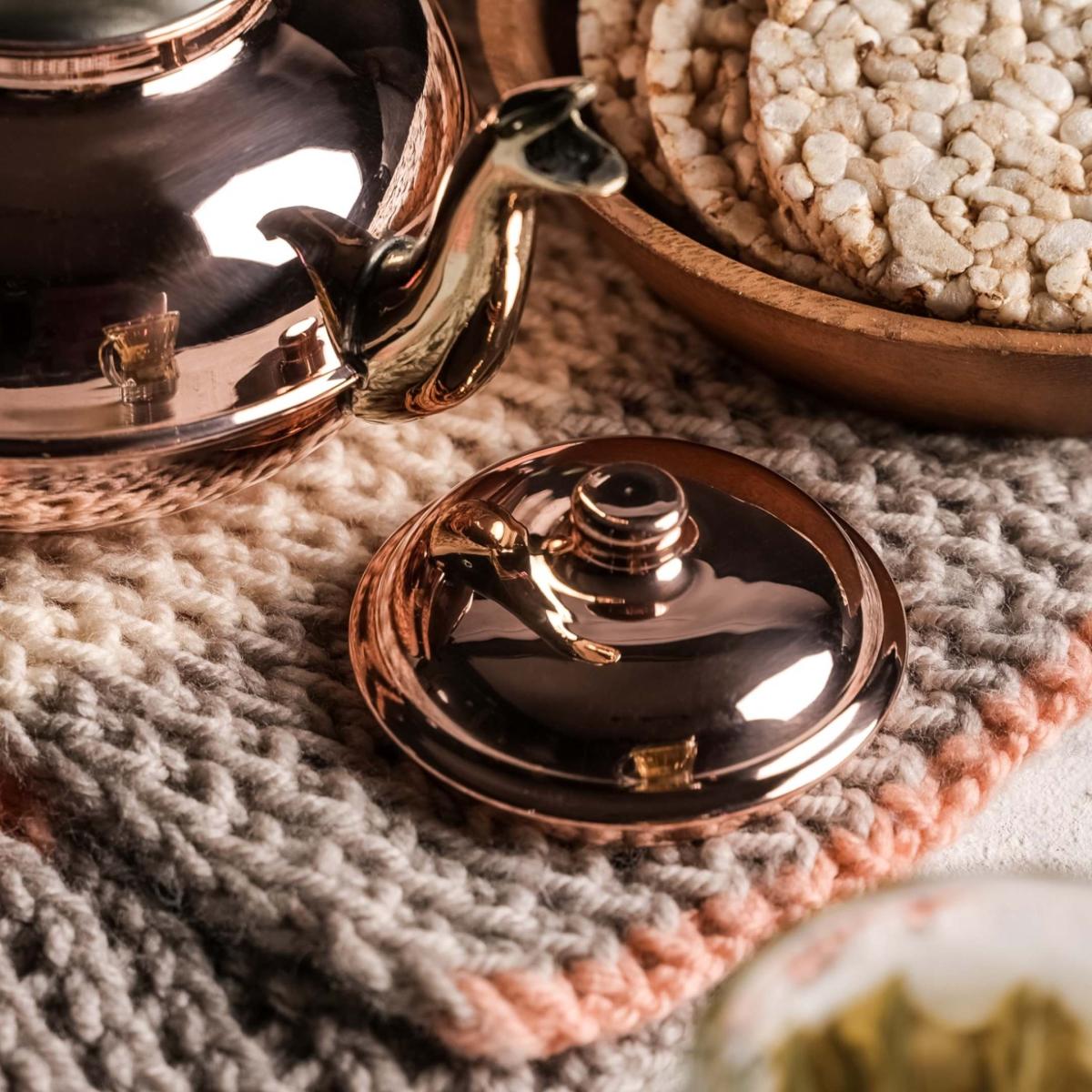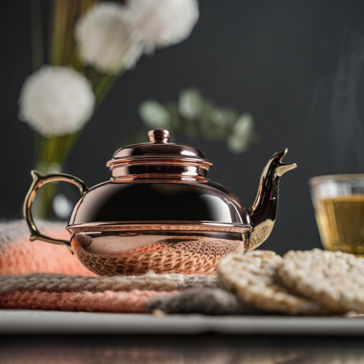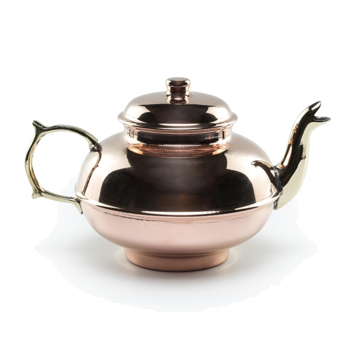 Brew your tea in timeless style with this handcrafted copper teapot. Featuring a gleaming polished finish and a graceful spout, this teapot brings a touch of old-world charm to your tea ritual. The brass handle and lid detail not only add a sophisticated contrast but also provide durability and comfort. The tin-lined interior ensures safety and preserves the flavor of your tea or coffee, making it perfect for daily use or special occasions. Whether you're serving a steaming pot of herbal tea or rich coffee, this teapot is as functional as it is elegant—a stunning centerpiece for any table.