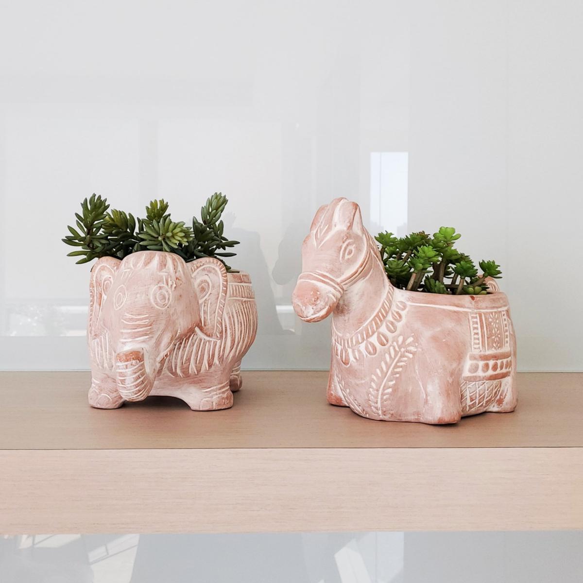 This playful pottery in the shape of animals will make your garden planters unique and functional. Each piece is molded into fun shapes that can be filled with lots of colorful flowers or green plant materials. Each product is designed and curated by Korissa, sustainably handmade by Fair Trade artisans in Bangladesh.