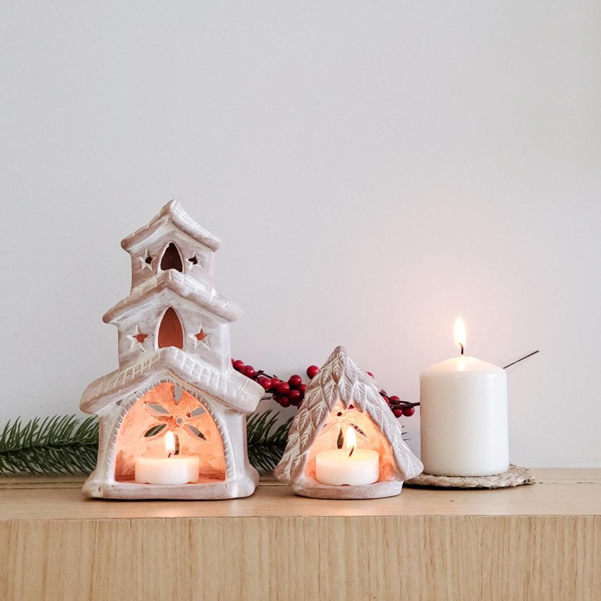 Embellished with stunning hand cut-work by our master artisans in Bangladesh, this handcrafted tea candle holder is designed to utilize the natural warmth of terracotta to create a warm atmospheric glow. When a tea light is lit inside the holder, the light falls through the cut work in beautiful patterns. This candle holder will display the affection of beautiful earth material and the human hand and give its beautiful lights and motifs in shadows into your favorite home and table spaces. Great gifts for weddings, parties, housewarming & birthday & holidays. Each product is designed and curated by KORISSA, sustainably handmade by Fair Trade artisans in Bangladesh.