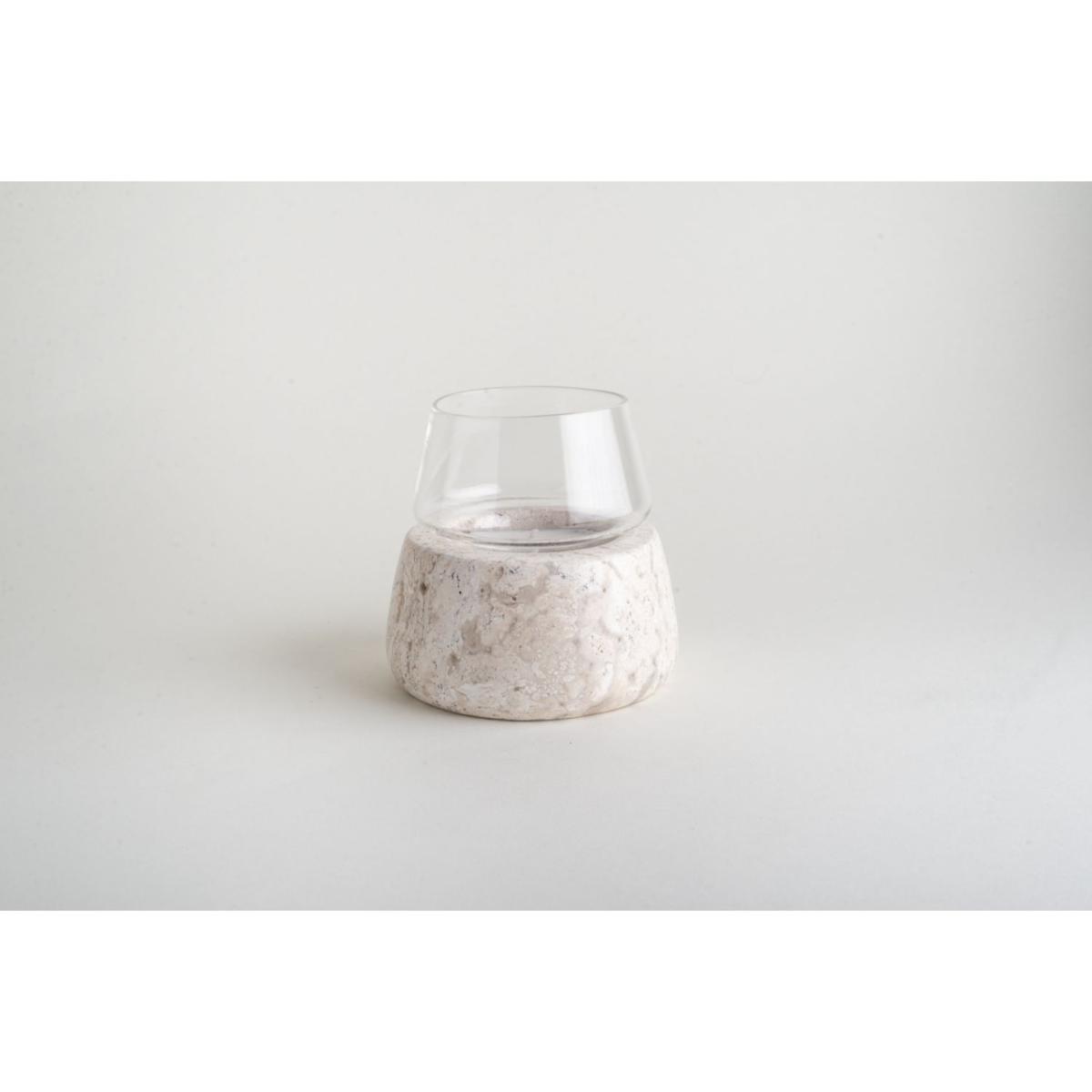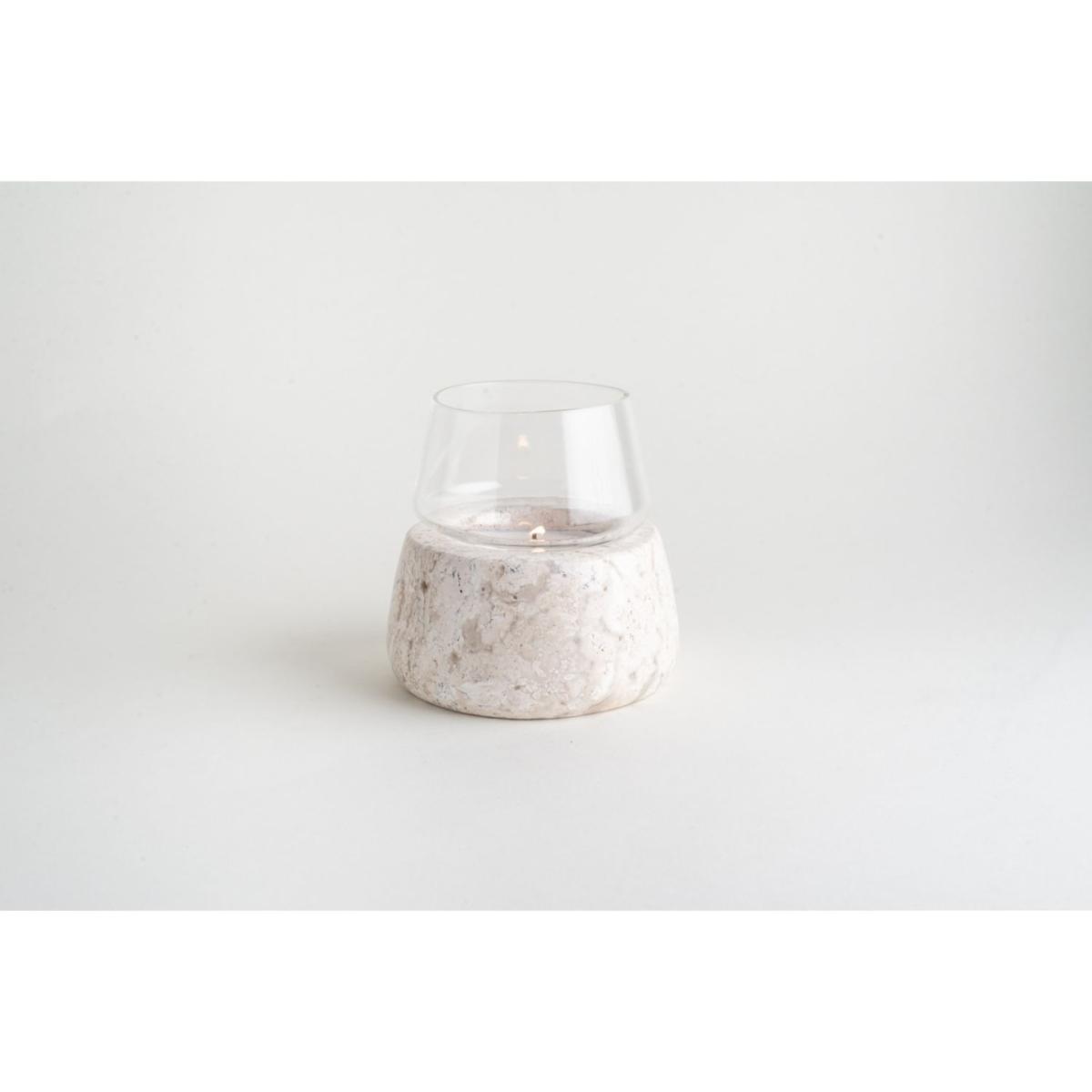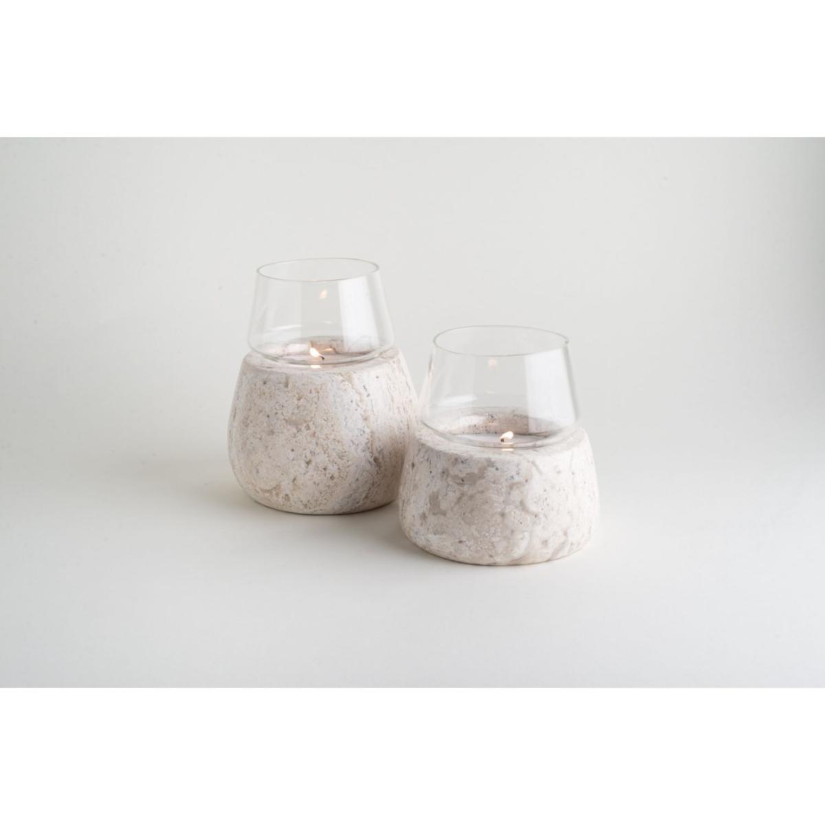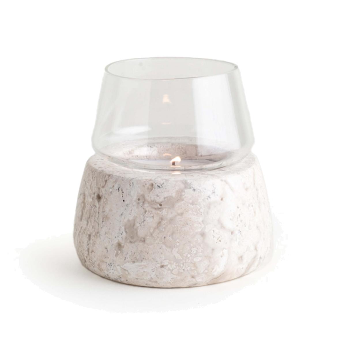 Neutrals Vaina Medium Candle Holder Glass - Travertine Marble | And Jacob