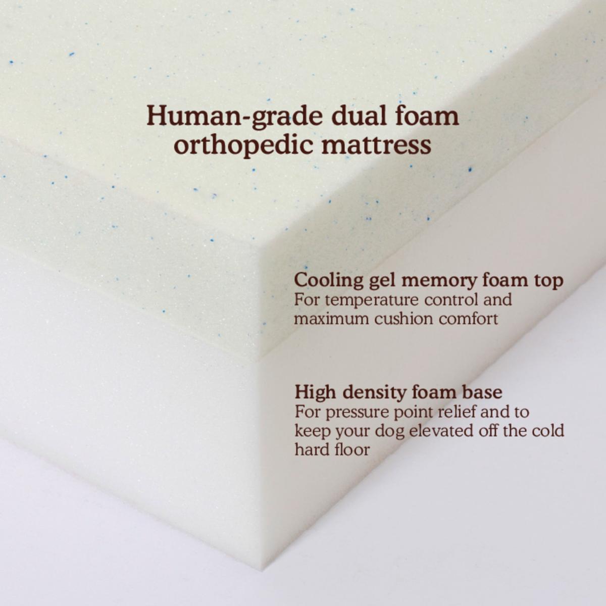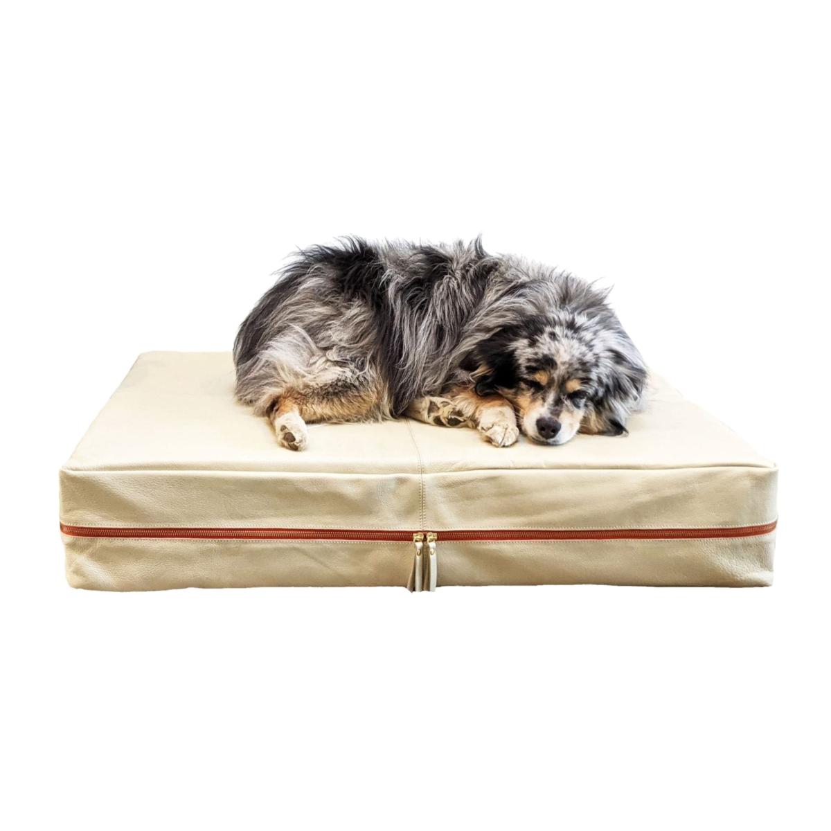 Meet Le Bed. The only no launder dog bed that looks great in your home, is naturally hypoallergenic and gives your dog the support they deserve with a dual foam orthopaedic mattress. The high density foam base supports their joints and bones, relieves pressure points and keeps them elevated off the floor. The cooling gel memory foam top works in conjunction with the breathable leather to help them regulate their temperature so they never get too hot while sleeping and adds an extra layer of cushion comfort. Made from 100% genuine natural milled leather making it incredibly durable and soft.