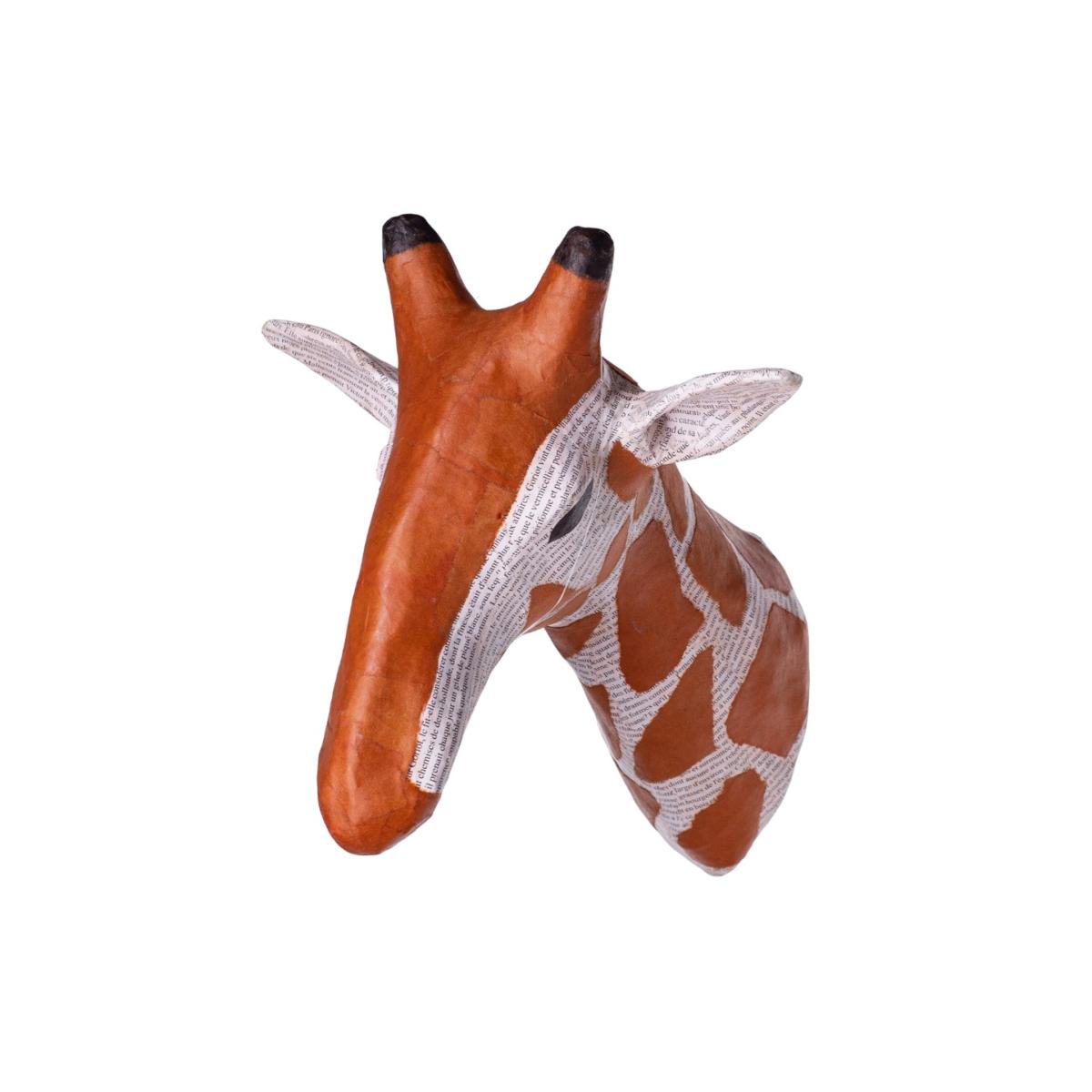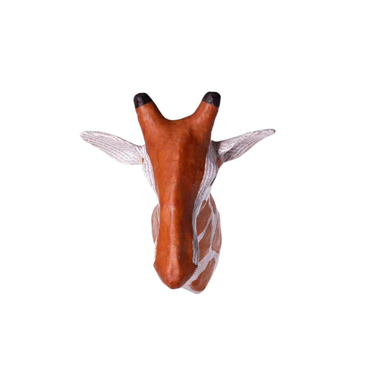 This piece was inspired by Michelange, who is far from tall, but blessed with slender limbs and a long, giraffe-like stride. With Balzac print and a dyed paper exterior, the piece is as distinctive as a giraffe’s pattern of spots. No two are alike. There is a small, clean puncture on the back. Use a nail or a screw to hang this wall art. The Michelange paper mache giraffe head is handmade in Haiti by skilled artisans with recycled paper and a natural arrowroot glue. Dyed paper patches are applied on our signature Balzac print.