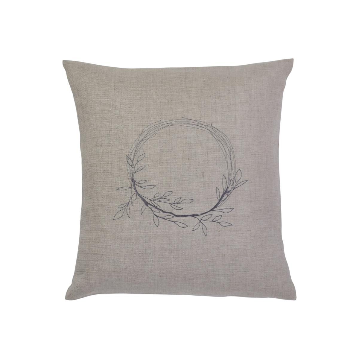 Natural Wild Wreath Cushion with grey embroidery.