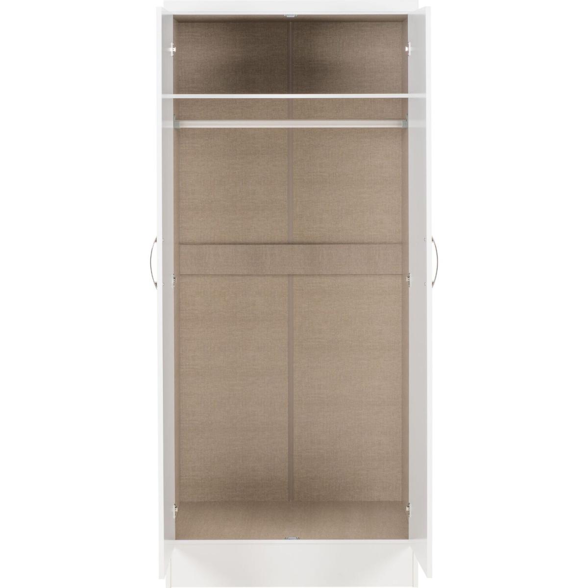 Offering storage solutions with a contemporary design this wardrobe comes in Two colours that will complement your existing decor. Two doors open onto a large storage space with a metal clothes rail for coats, dresses, suits, and other clothing, with a shelf above the hanging rail. The wardrobe is built from manufactured wood. UK Mainland delivery only, between 9am - 9pm (weekdays) the courier will contact you on the day of delivery to offer a time slot. This takes place within 10 working days (Ground floor only). Please also ensure that we have a note of your up-to-date address and contact information, to be passed to the couriers.