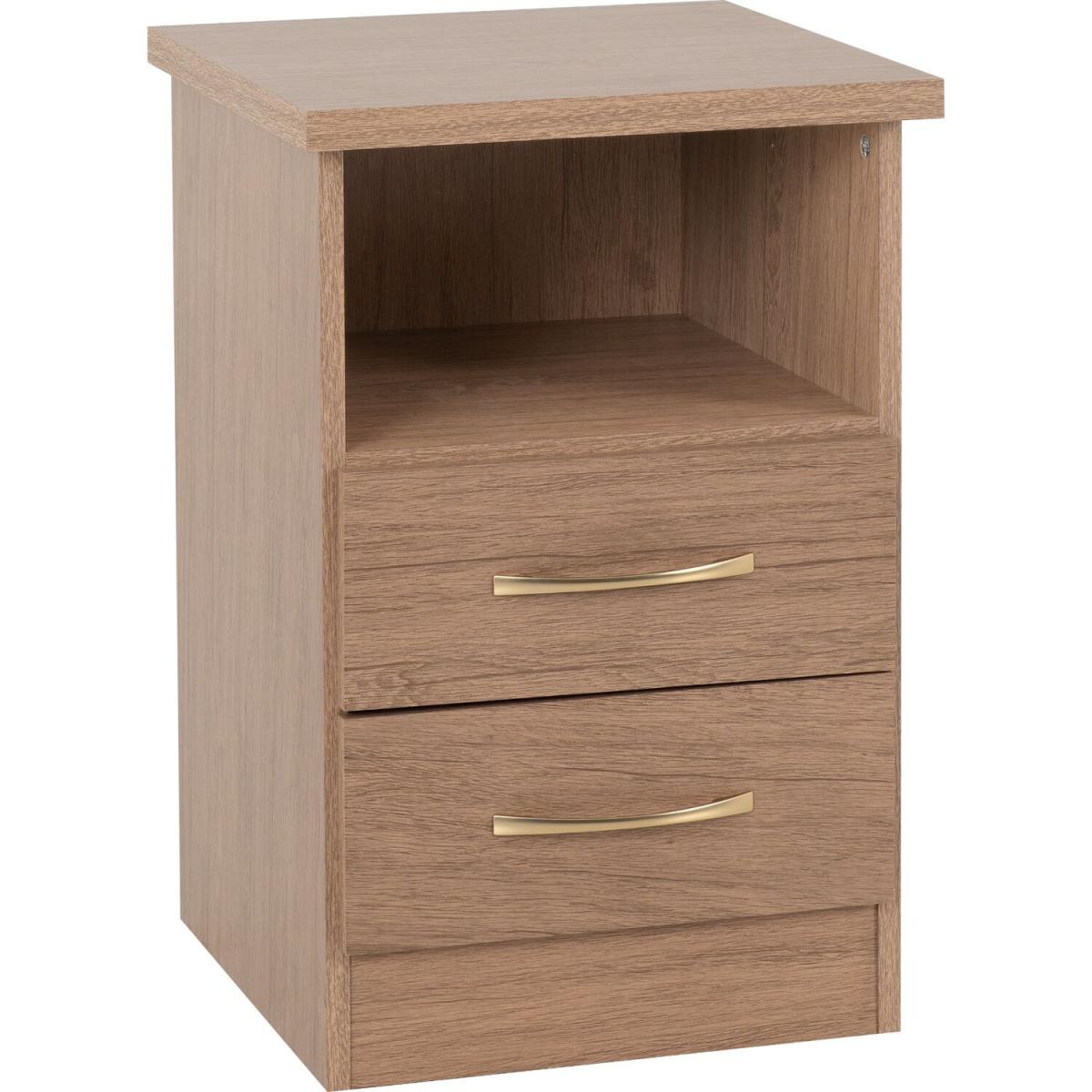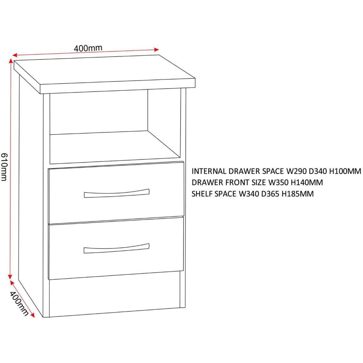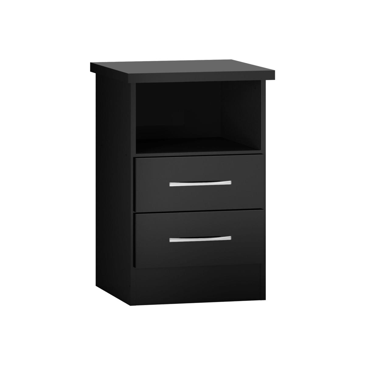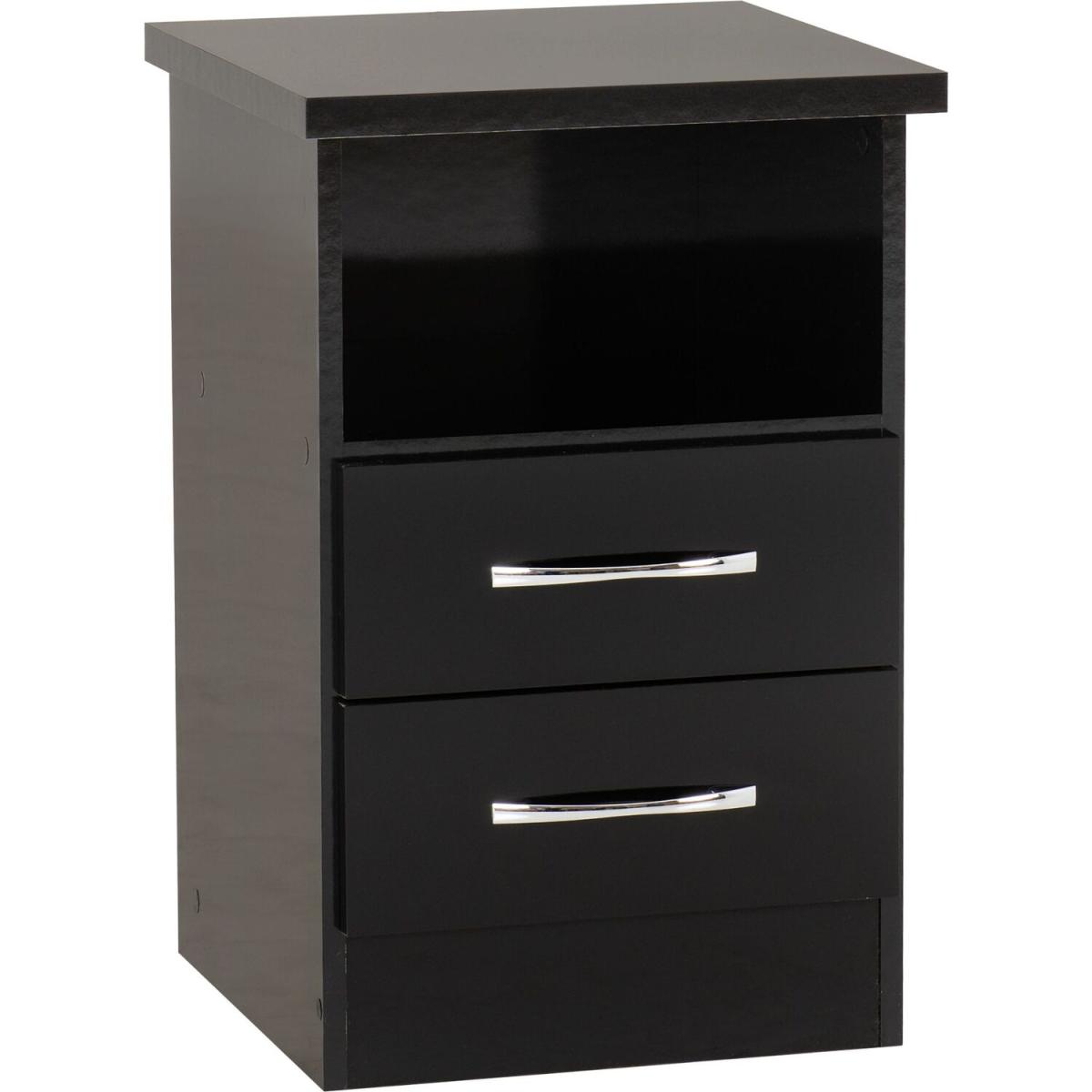 With a gloss finish and external and internal storage options, this bedside table is as suitable for the living room or even the hallway as it is for the bedroom. The table features two drawers and one open shelf, which could be used along with the top as a display surface for books, houseplants, or just a glass of water you might need at night. Care Instructions Wipe clean with a soft cloth. UK Mainland delivery only, between 9am - 9pm (weekdays) the courier will contact you on the day of delivery to offer a time slot. This takes place within 10 working days (Ground floor only). Please also ensure that we have a note of your up-to-date address and contact information, to be passed to the couriers.