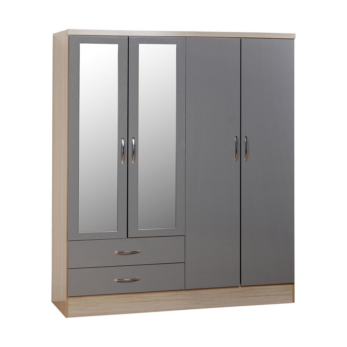 Nevada 4 Door 2 Drawer Grey Mirrored Wardrobe Grey