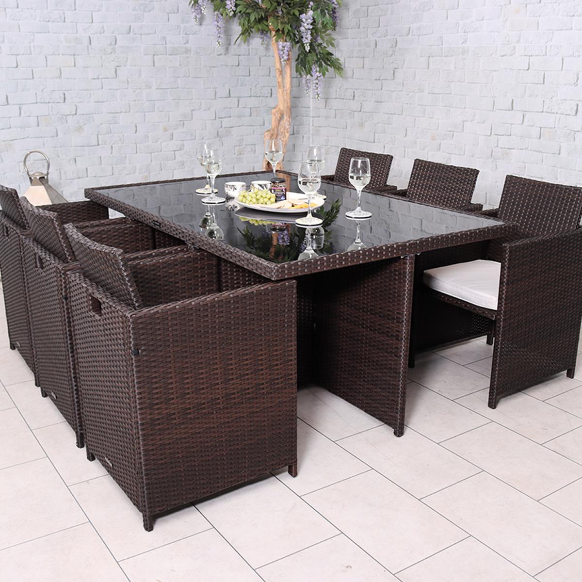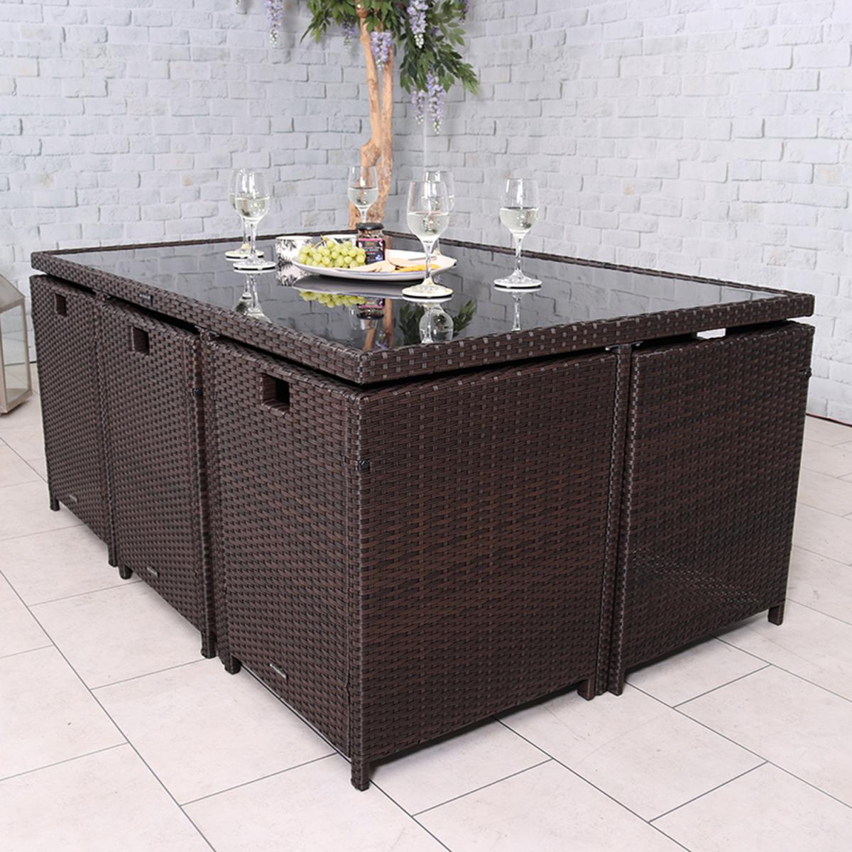I love this six-seater cube set because of its versatile, contemporary look that works well in both modern and traditional garden settings. The deep brown colour adds warmth and richness, making it suitable for outdoor spaces with natural or neutral palettes. It’s a practical choice for outdoor dining, as the design encourages a cosy, communal feel, and the cube shape allows for flexible arrangements. To style it, consider adding colourful, weather-resistant cushions to bring in colour and comfort, or layered tableware and lanterns for evening gatherings. This set also pairs well with a mix of materials such as natural stone or wood in your garden accessories, creating a cohesive and welcoming outdoor space.