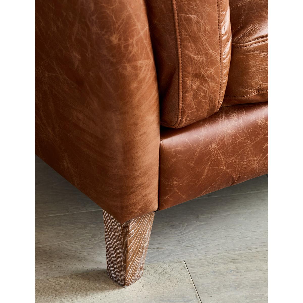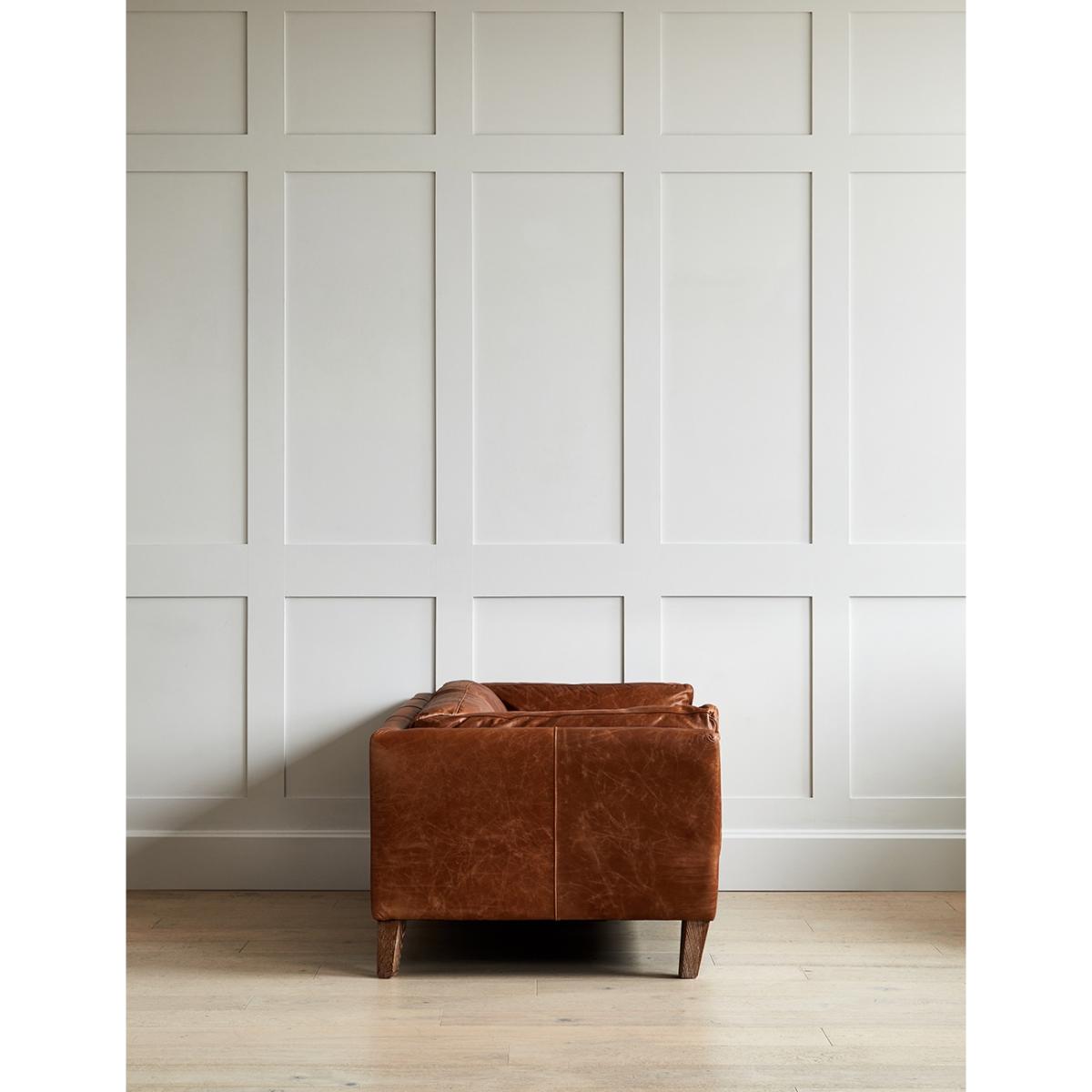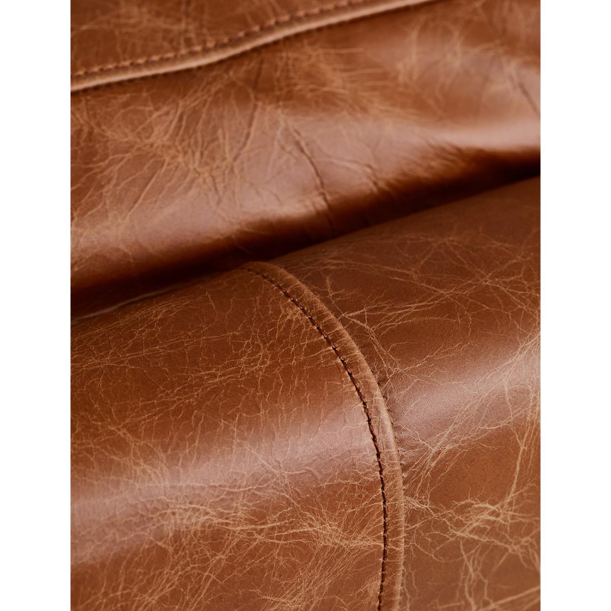 Searching for a leather sofa that is both comfortable and stylish? We love the 1970's-inspired silhouette of this retro leather sofa. The back and side cushions provide welcome support while the seat cushions are comfy for snuggling up on.