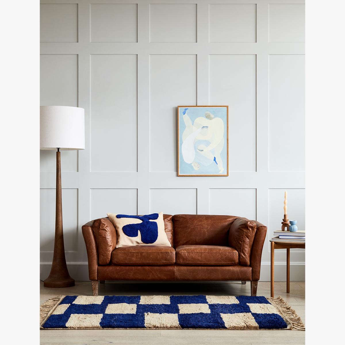 I love this brown leather sofa for its timeless appeal and versatility. It works particularly well in both vintage-inspired and modern interiors, adding warmth and character to a variety of colour schemes. The rich leather finish makes it a practical choice because it ages beautifully, developing a unique patina over time. For styling, consider pairing it with textured cushions in contrasting fabrics or vibrant colours to add personality. It looks great with a mix of contemporary or mid-century furniture and can be complemented by a patterned rug, like a classic geometric or bold graphic, to anchor the space. Keep accessories minimal for a sleek look, or add cosy throws for a relaxed, lived-in feel.