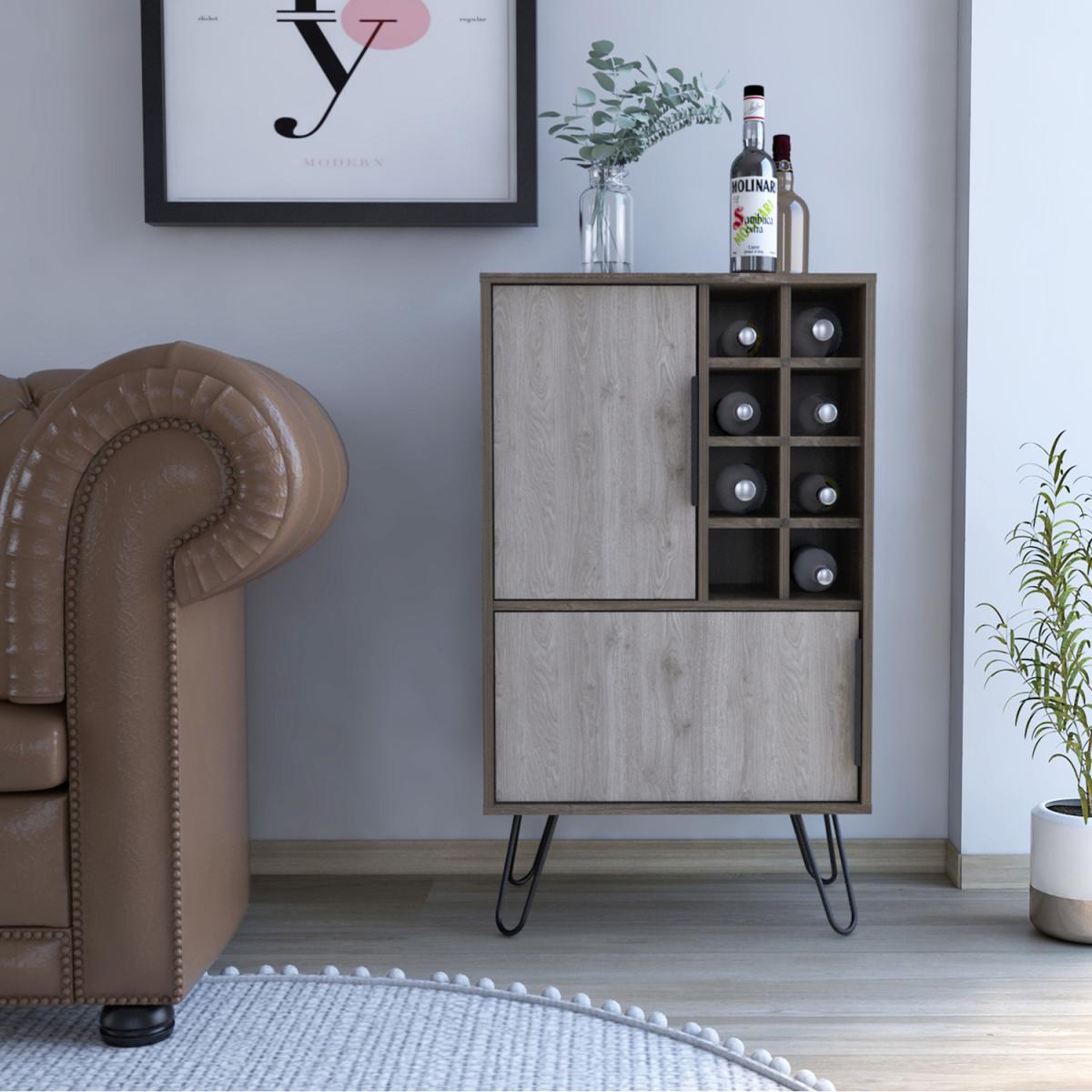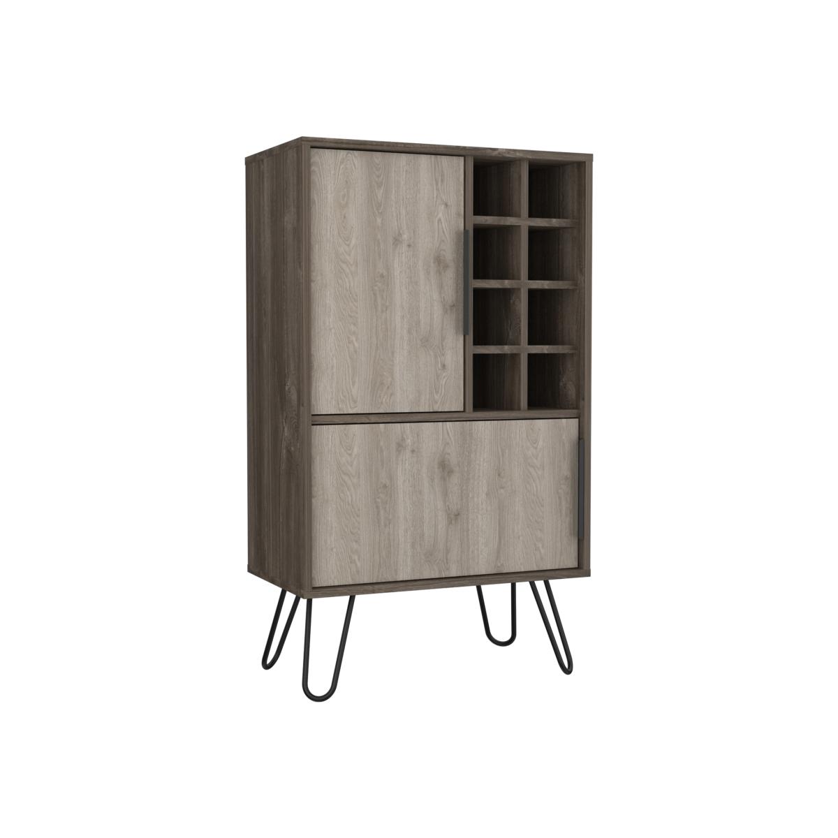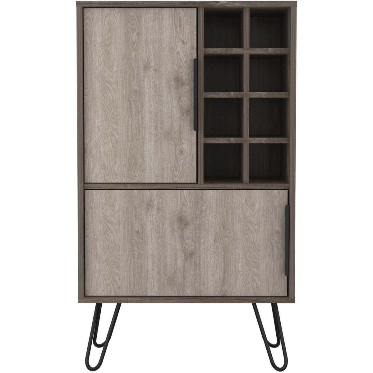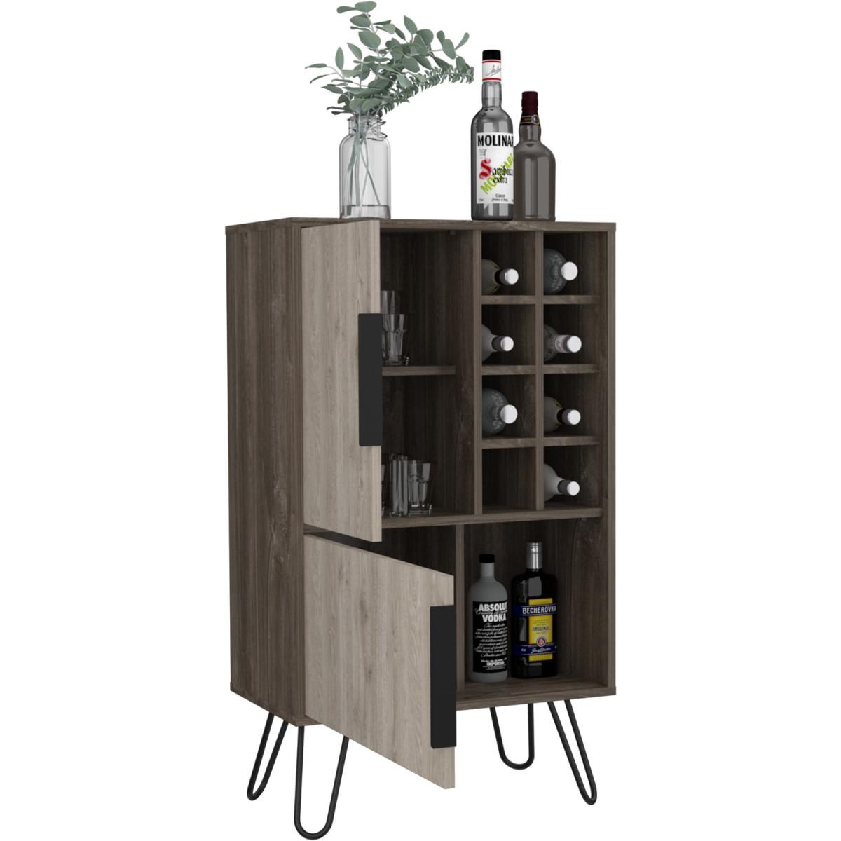 The Nevada collection is designed to give you a fresh outlook on making the most of your home, with innovative pieces which are ideal for todays casual living lifestyle. Each piece is designed to serve a practical purpose and can be used individually or combined with other pieces from our Nevada range for a fully co-ordinated look. Made from hardwearing manufactured boards. An easy to clean woodgrain textured smoked oak effect is used for the cabinets with bleached grey effect for the fronts and coordinating panels. The industrial feel is further accented with real metal black painted grip handles and hairpin legs. This drinks bar offers you an ideal place to store glasses, bottles and anything you need to get the party started. Open bottle storage slots sit alongside a storage cupboard with internal shelf, ideal for glassware. Underneath a wide opening door conceals a split cupboard which provides plenty of space for more storage.